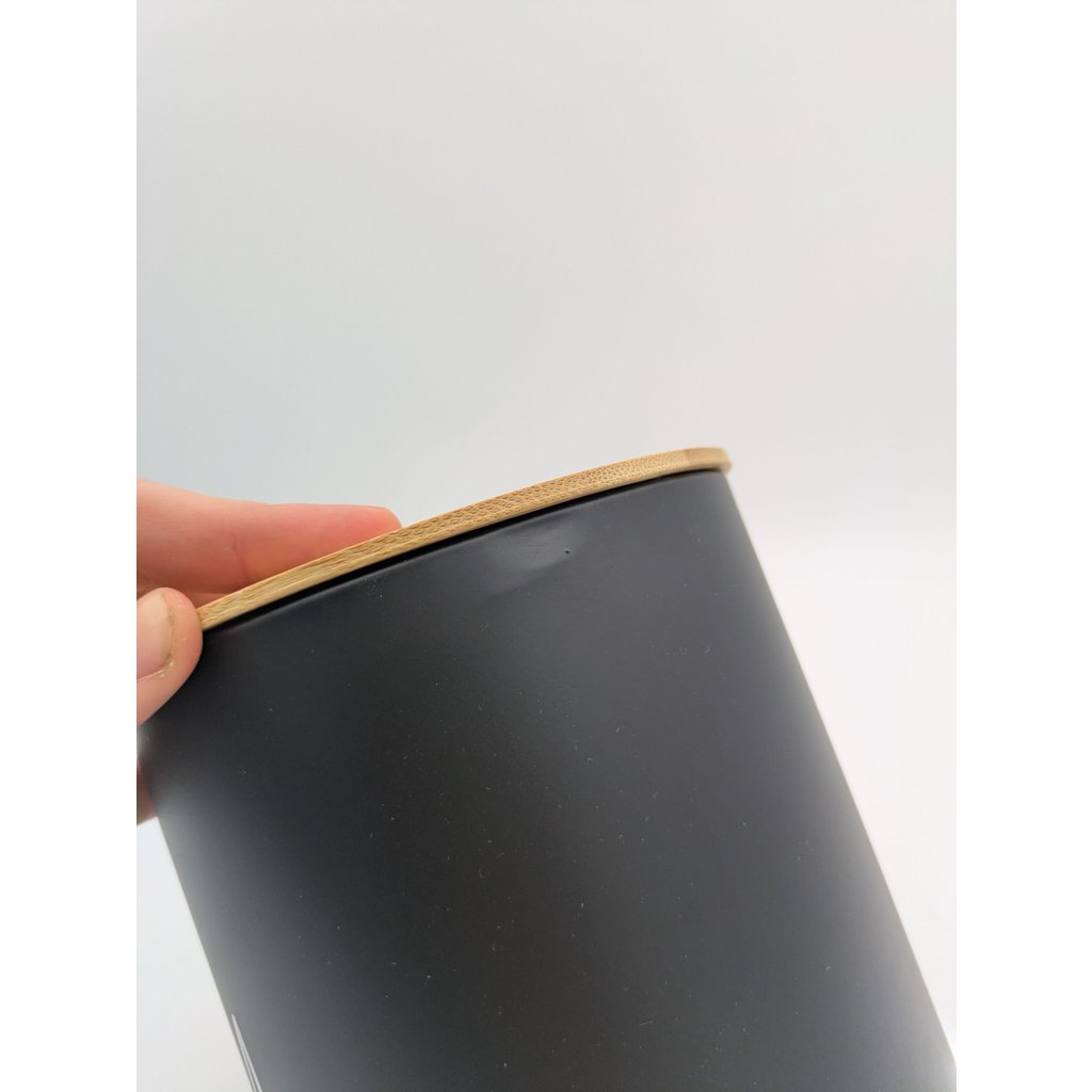 Dóza na potraviny, plechová, černá, s bambusovým víkem NA HRUBOU MOUKU