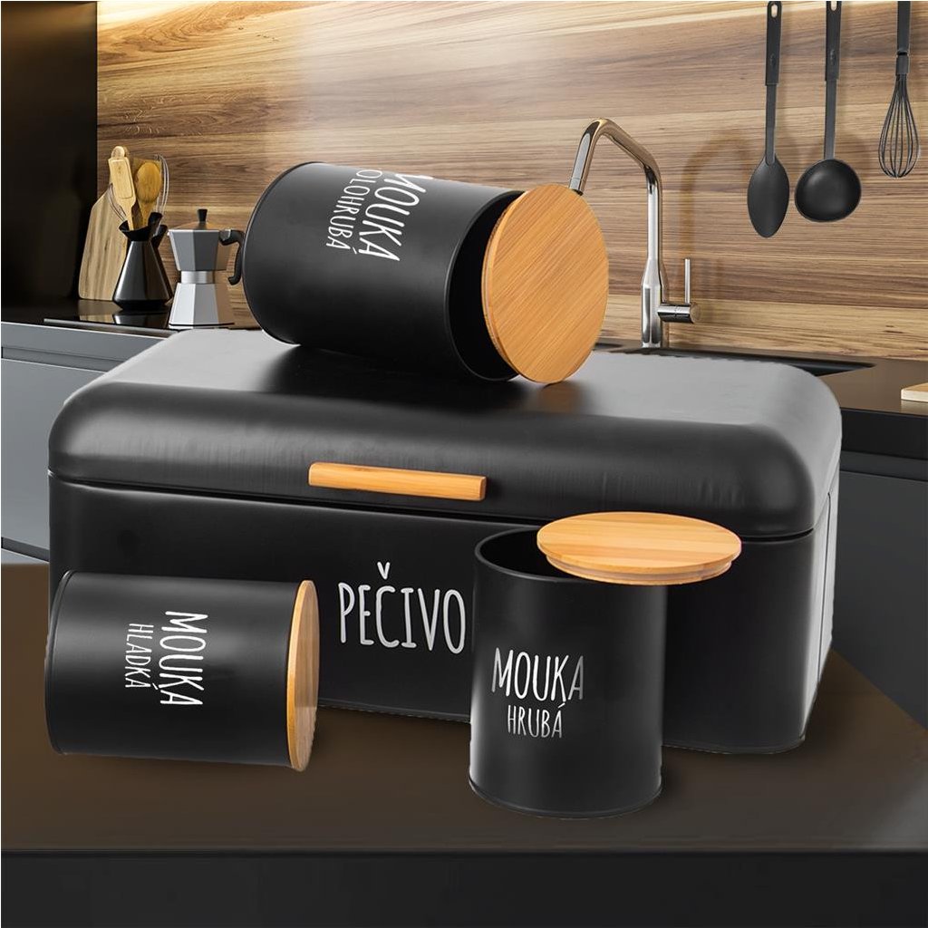 Tato kovová dóza s bambusovým těsnícím víčkem je ideální pro uložení celého balení sypkých potravin, jako je například mouka, sůl, cukr nebo káva. Díky modernímu a praktickému designu v kulatém černém provedení s českým bílým nápisem se stane ozdobou každé kuchyně. Bambusové víko s těsnícím silikonovým kroužkem zajišťuje, že potraviny zůstanou déle čerstvé a chráněné před vlhkostí. Dóza nejen zkrášlí vaši kuchyňskou linku, ale také přispěje k organizaci a udržení pořádku na kuchyňské lince i ve skříňkách.