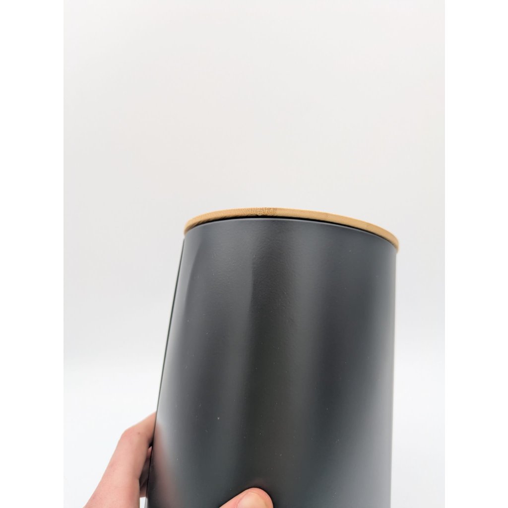 Dóza na potraviny, plechová, černá, s bambusovým víkem NA POLOHRUBOU MOUKU