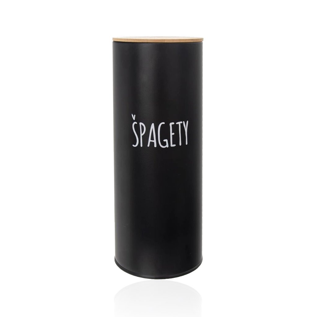 Dóza na potraviny, plechová, černá, s bambusovým víkem NA ŠPAGETY