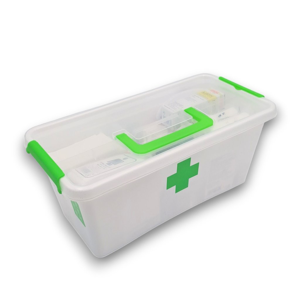 2. jakost - Lékárnička, úložný box na léky s vnořeným organizérem, 2v1, s madlem, antibakteriální, 8l