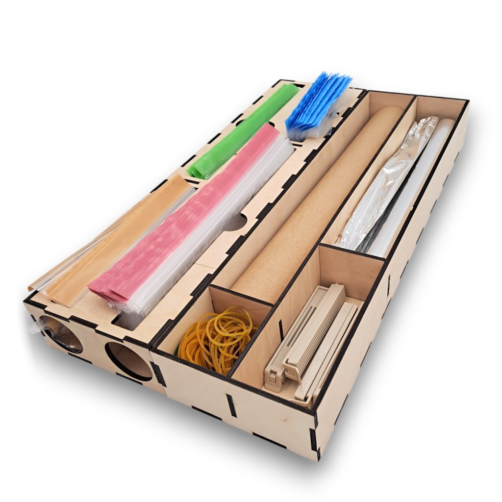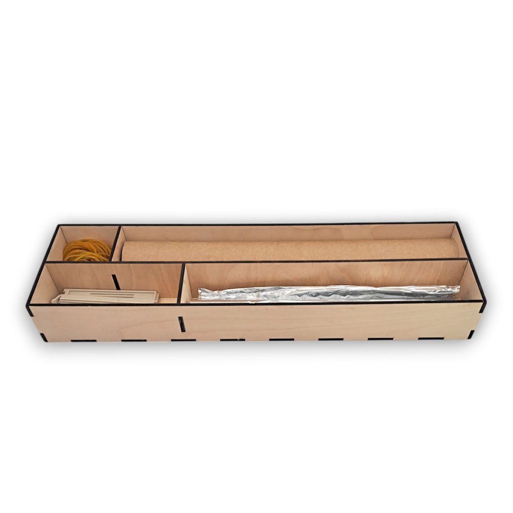 2. jakost - Organizér na folie/alobal, 4 přepážky do šuplíku, dřevěný VASKY 13 x 46 cm