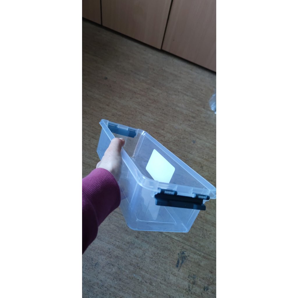 🔗 Materiál: pevný čirý plast, 2 boční zámky pro bezpečné uzavření