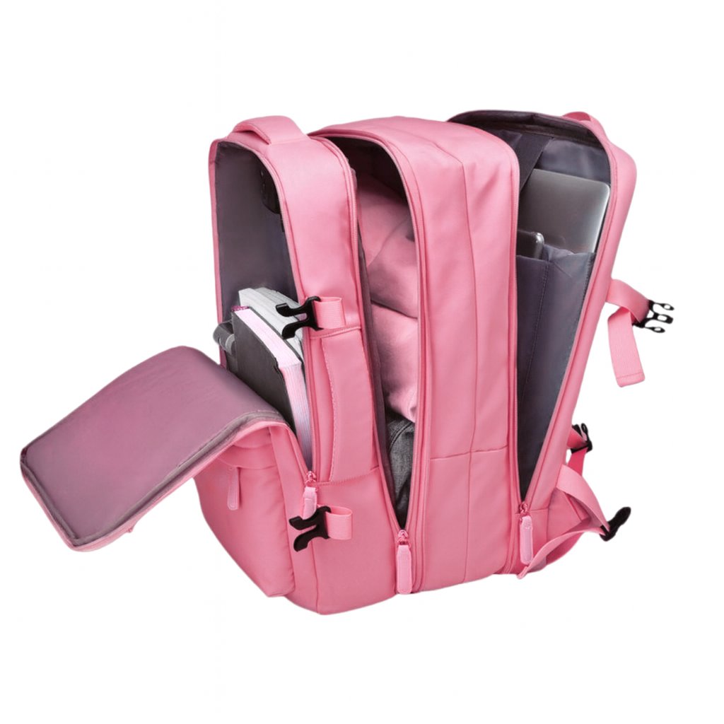 Cestovní batoh, příruční zavazadlo do letadla, vodotěsný s USB - růžový