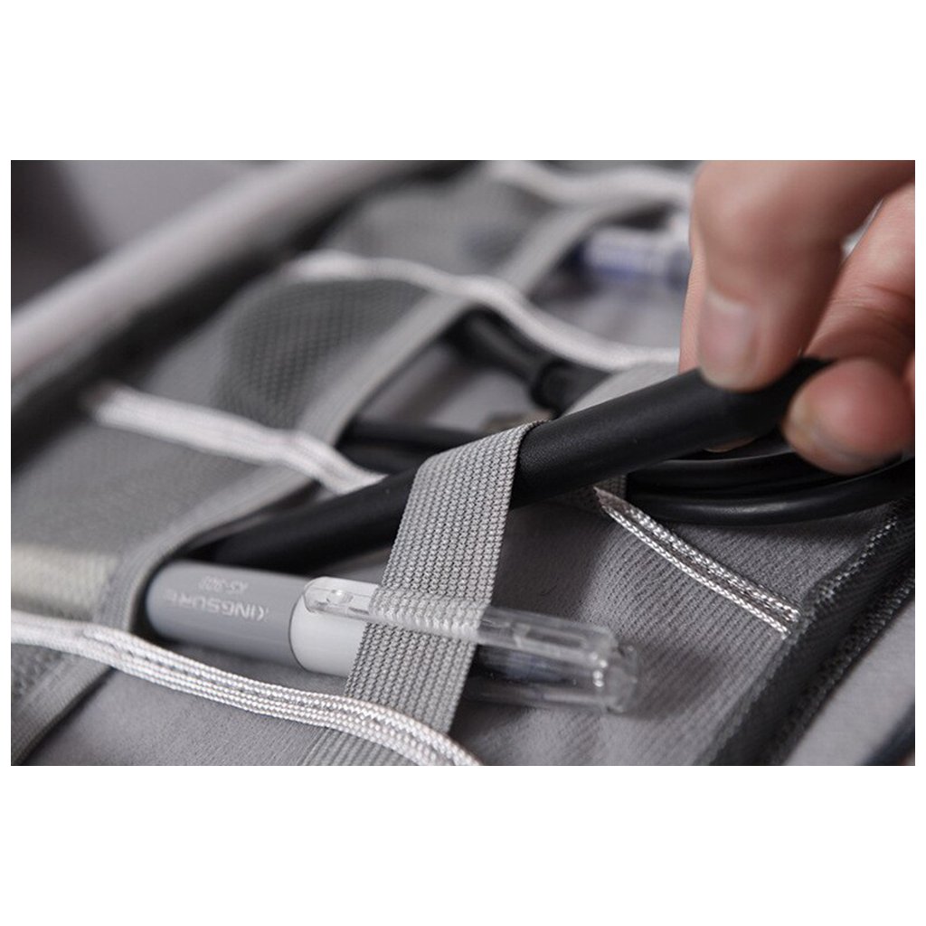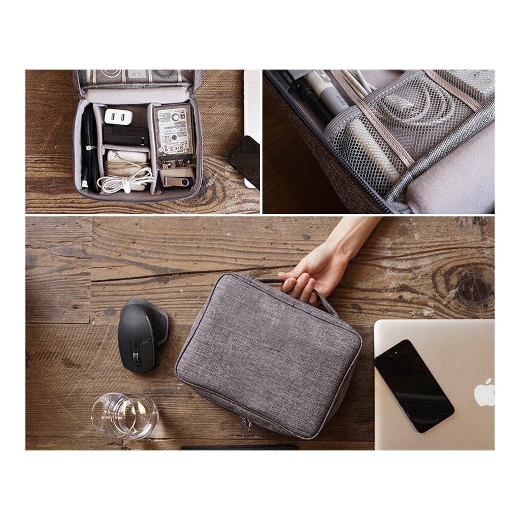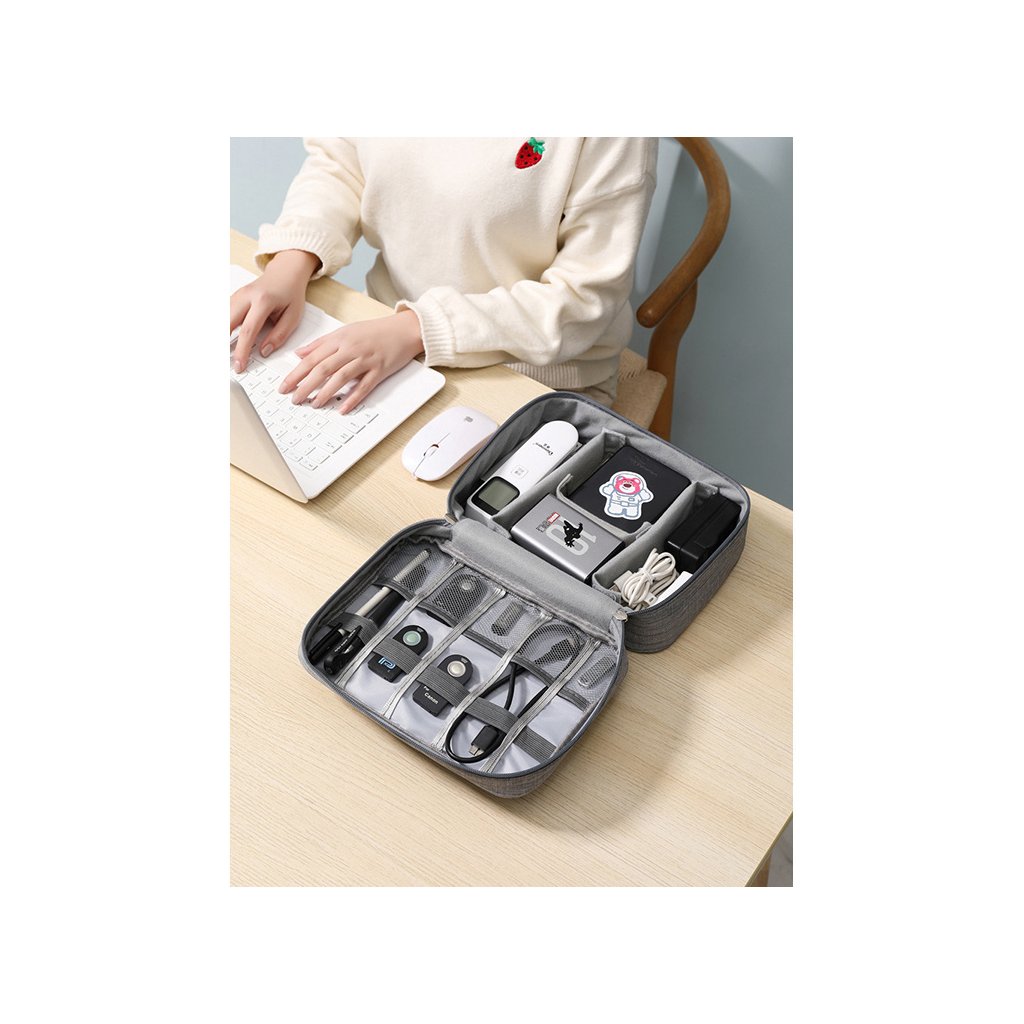 Už žádné zamotané kabely a hledání nabíječek! Tento cestovní organizér na elektroniku udrží všechny vaše kabely, nabíječky, powerbanky, sluchátka a další příslušenství na jednom místě. Flexibilní vnitřní uspořádání umožňuje přizpůsobit přihrádky podle velikosti vašeho příslušenství.