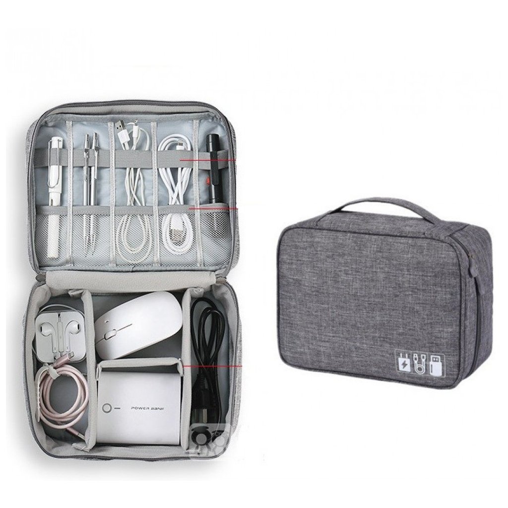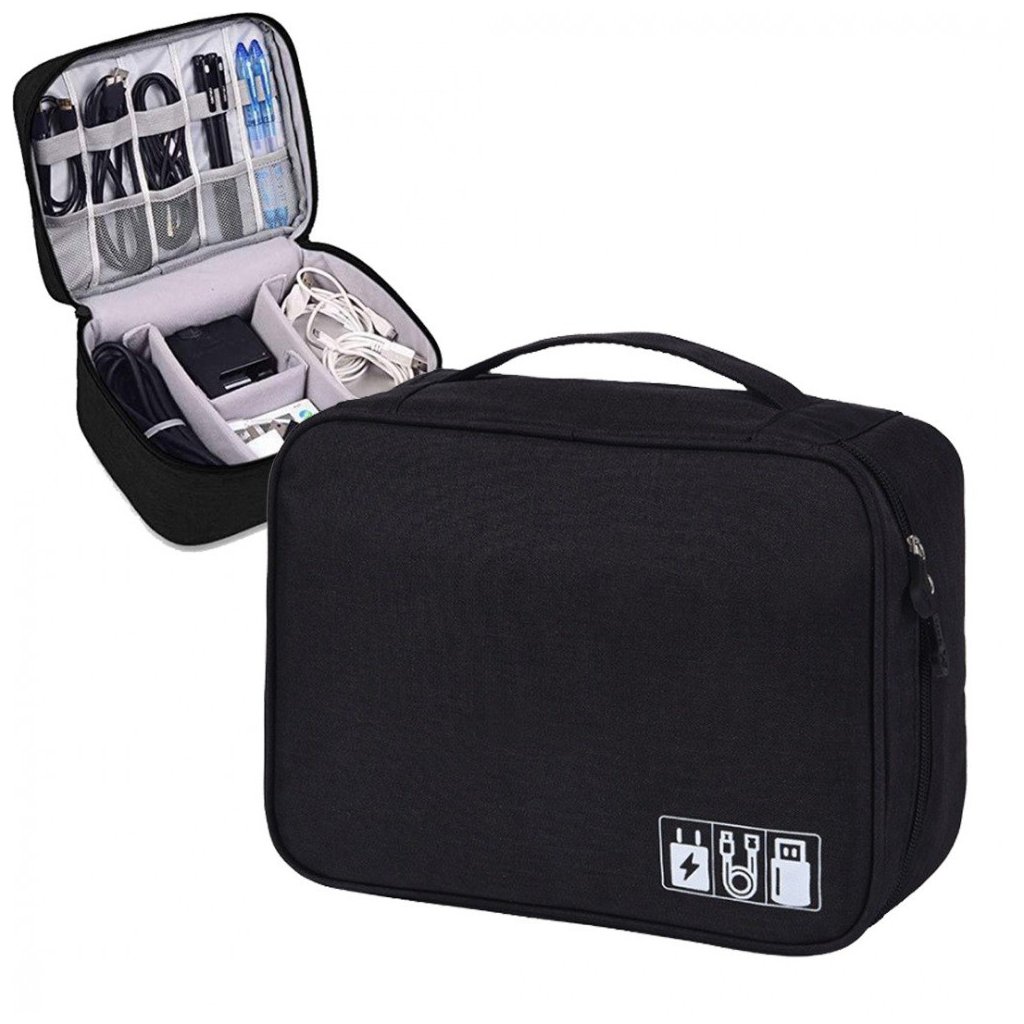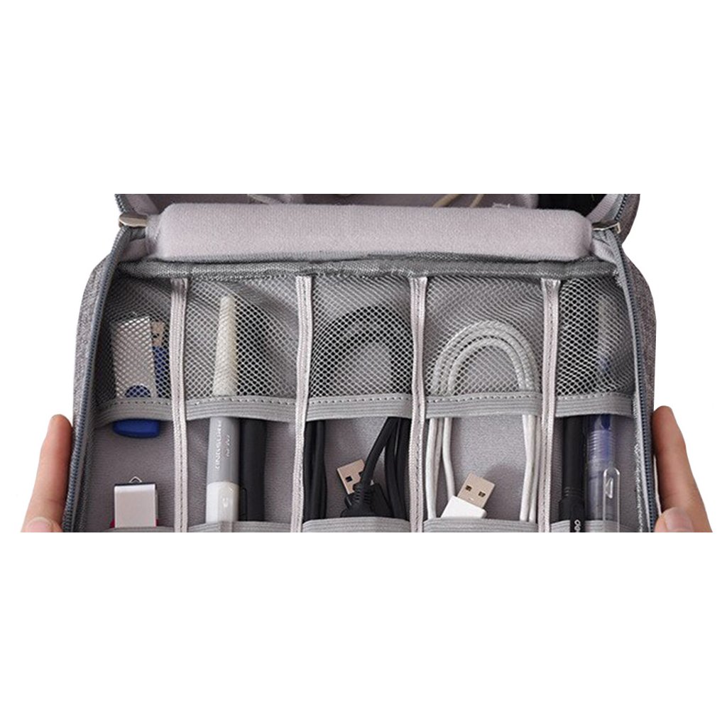 Už žádné zamotané kabely a hledání nabíječek! Tento cestovní organizér na elektroniku udrží všechny vaše kabely, nabíječky, powerbanky, sluchátka a další příslušenství na jednom místě. Flexibilní vnitřní uspořádání umožňuje přizpůsobit přihrádky podle velikosti vašeho příslušenství.