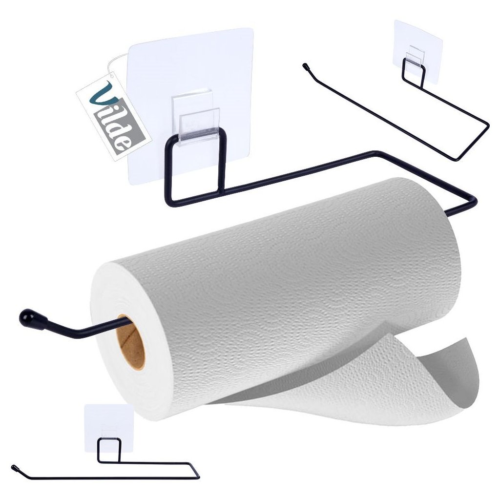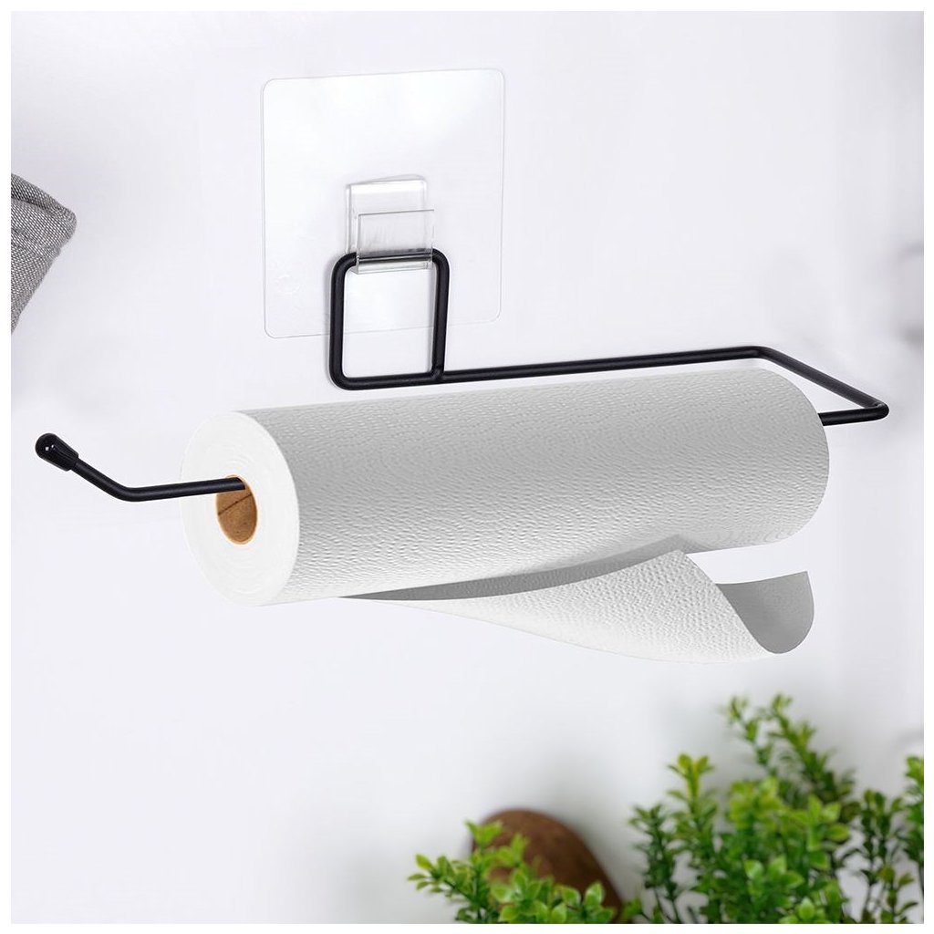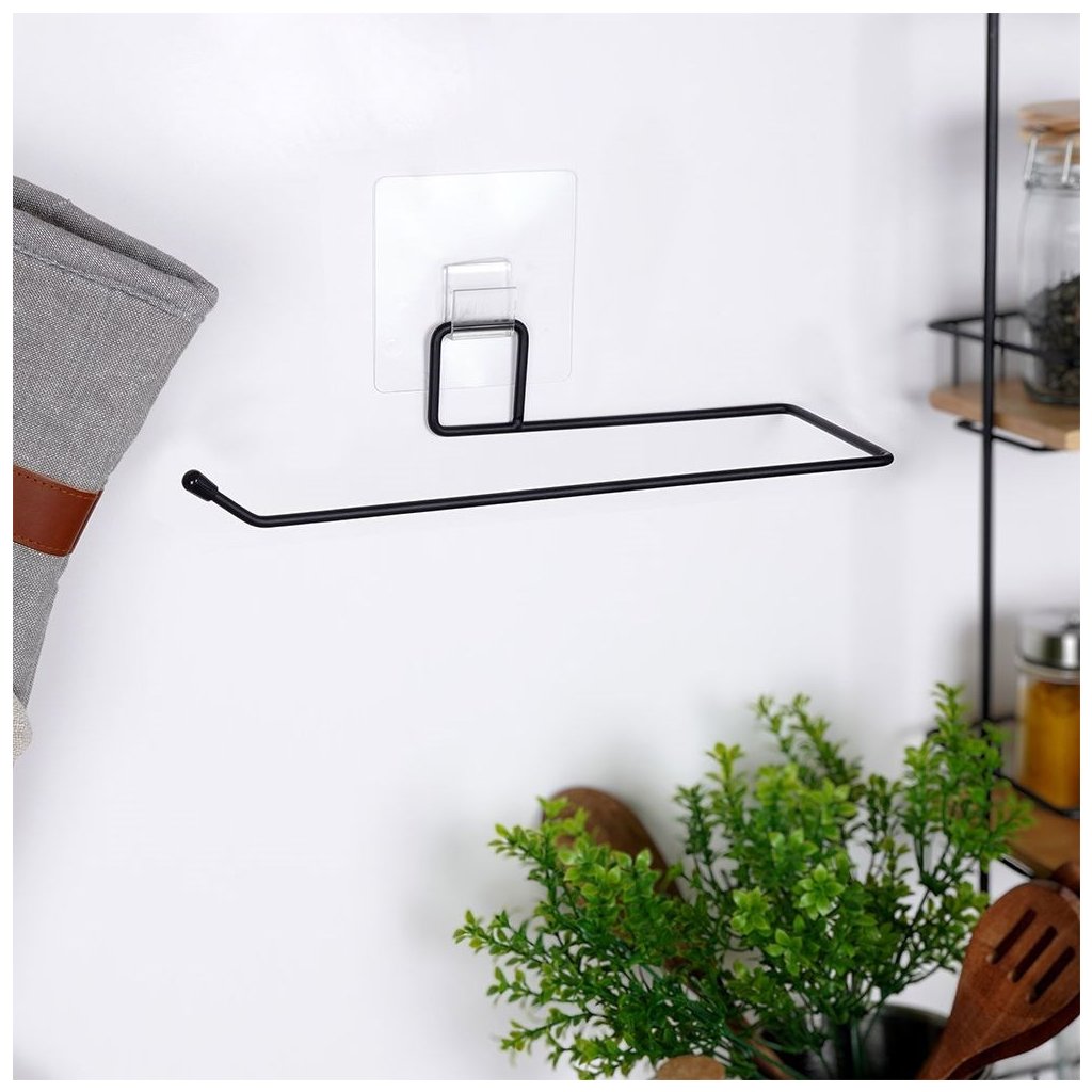 Držák na kuchyňské utěrky, kovový černý, samolepící