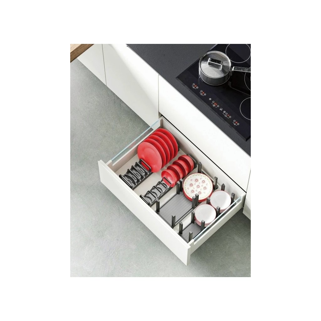 Prostorný a praktický držák STRIPES vám pomůže přehledně uspořádat misky přímo v kuchyňské zásuvce. Díky chytrému provedení a variabilním příčkám budou misky stabilně uložené, snadno dostupné a chráněné před poškozením.