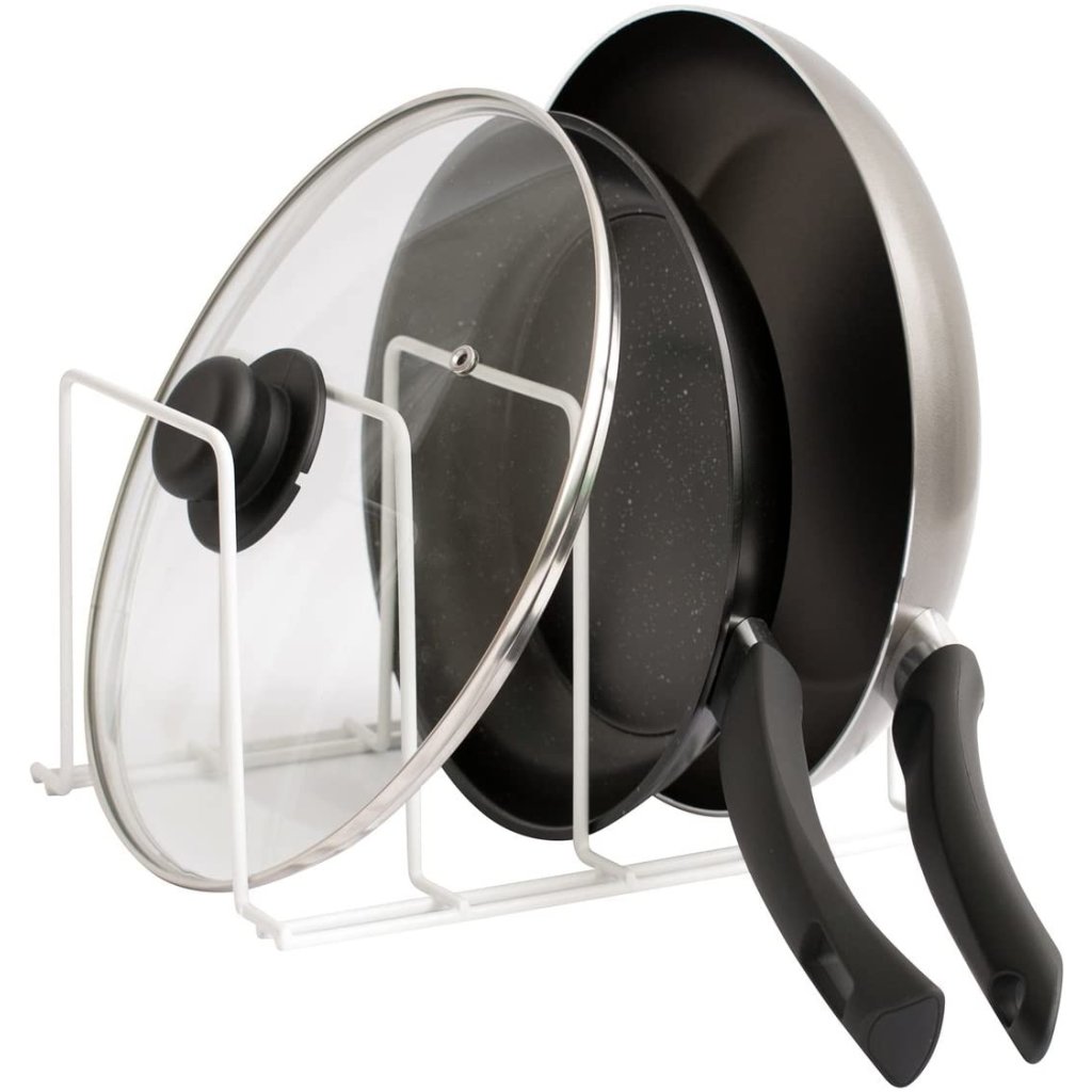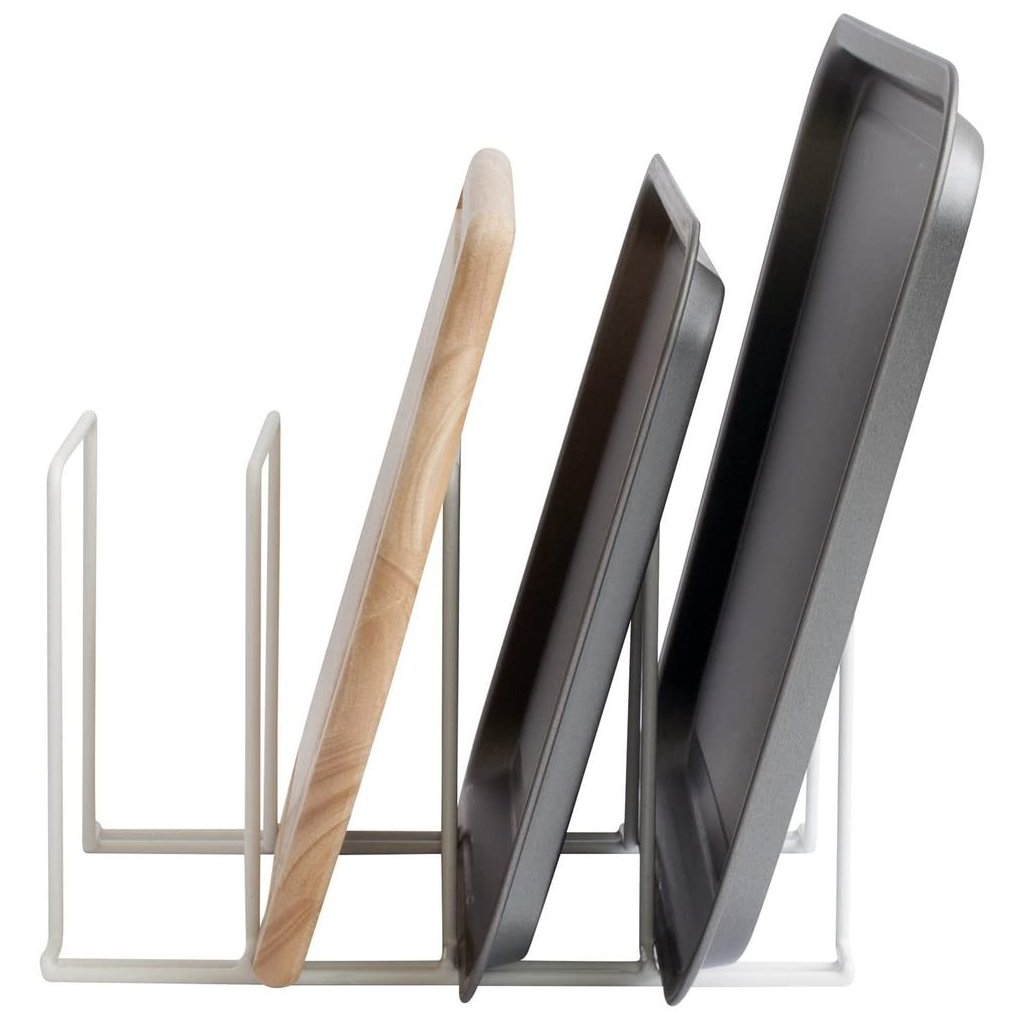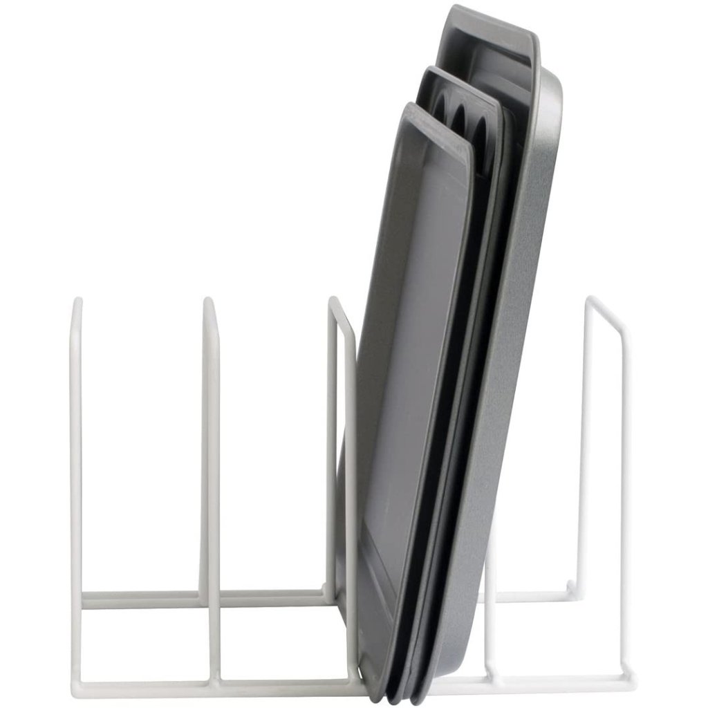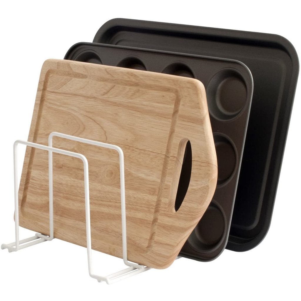 Udělejte si pořádek ve skříni s tímto praktickým organizérem! Ideální pro uspořádání plechů do trouby, krájecích prkének, pekáčů, pánví a jejich poklic. Skvěle poslouží i jako stojan na kuchařky, které budete mít vždy po ruce.