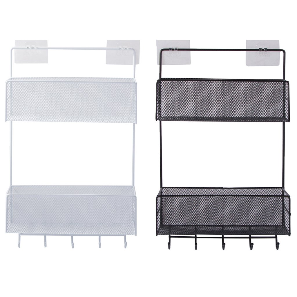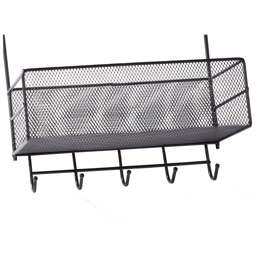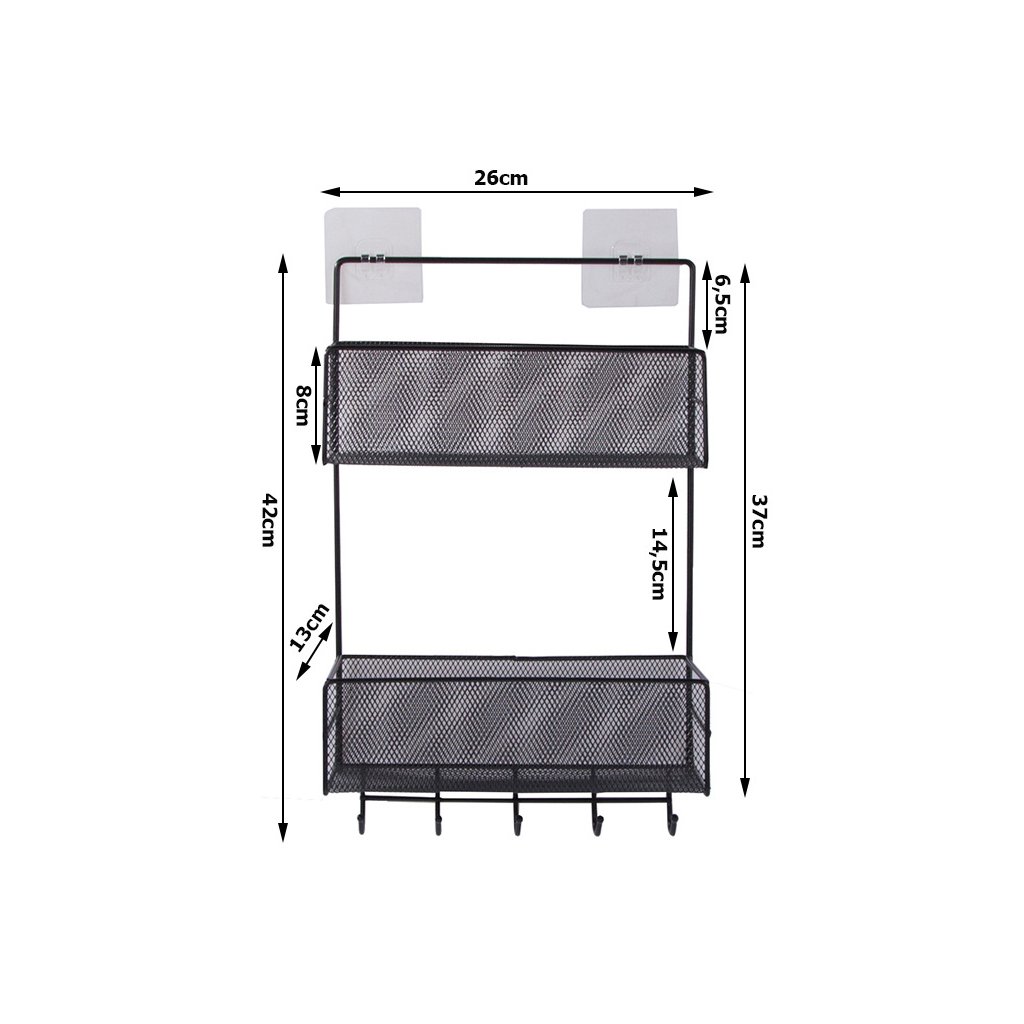 🖤🧴 ZÁVĚSNÝ KOVOVÝ ORGANIZÉR – 2 POLIČKY A 5 HÁČKŮ DO KOUPELNY, KUCHYNĚ I PŘEDSÍNĚ