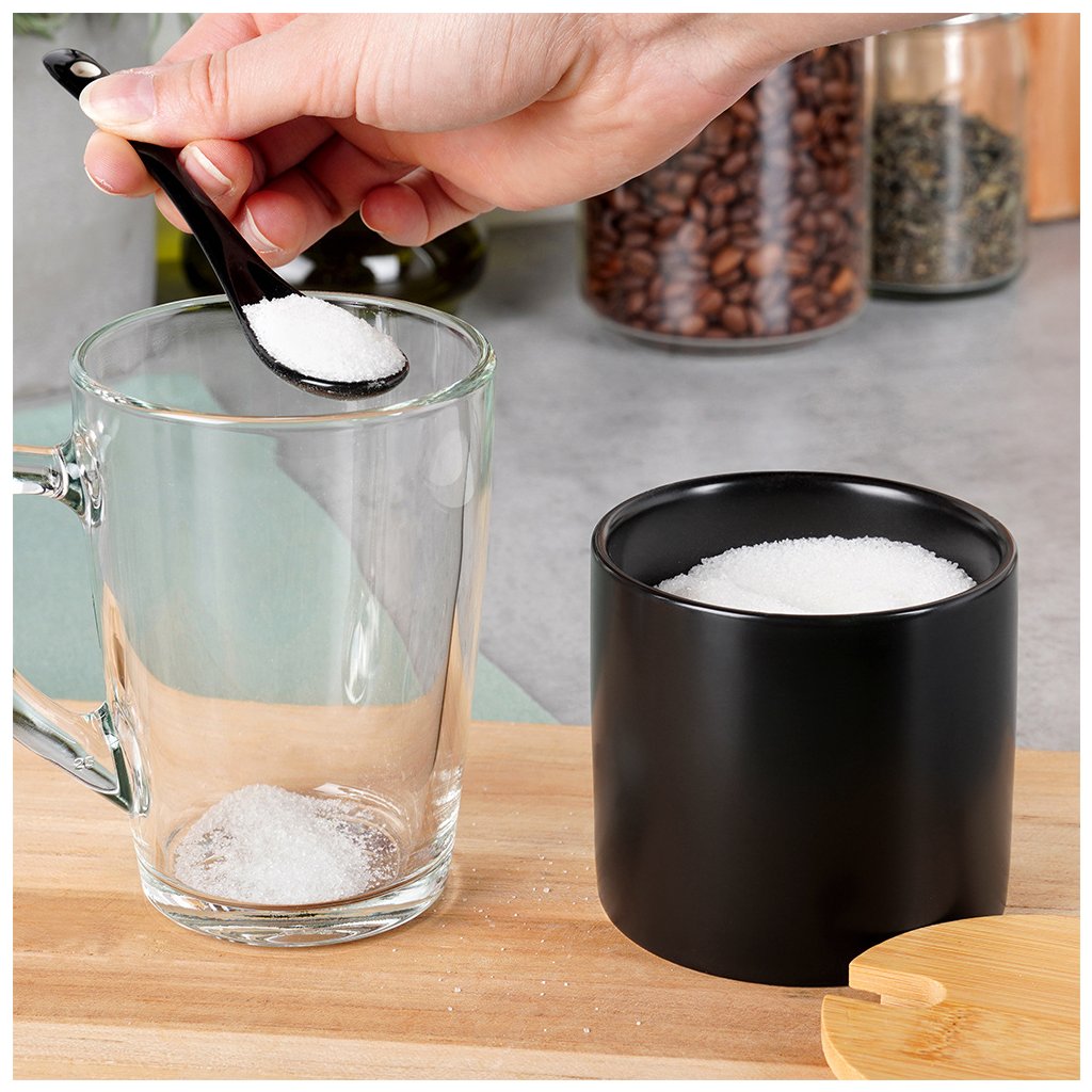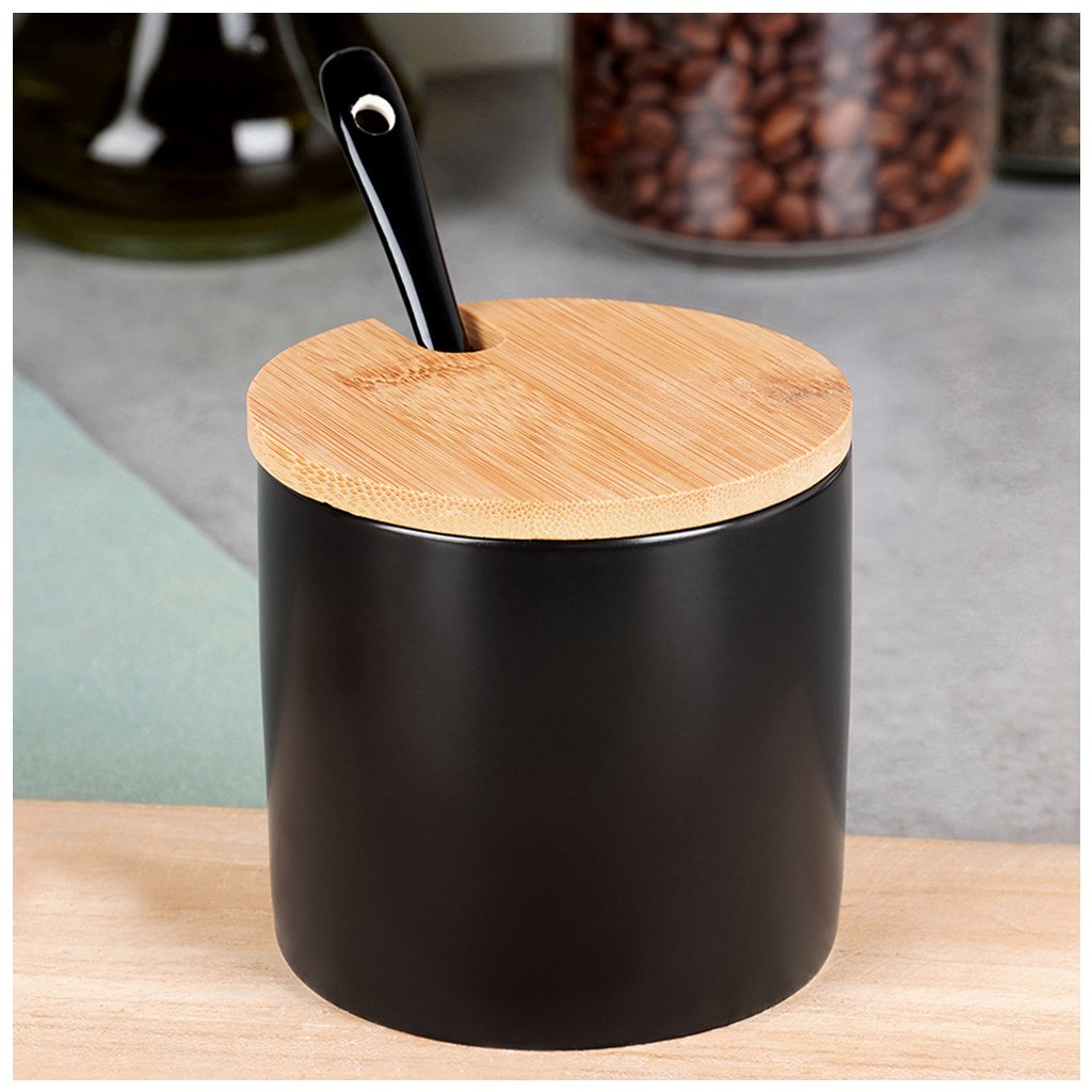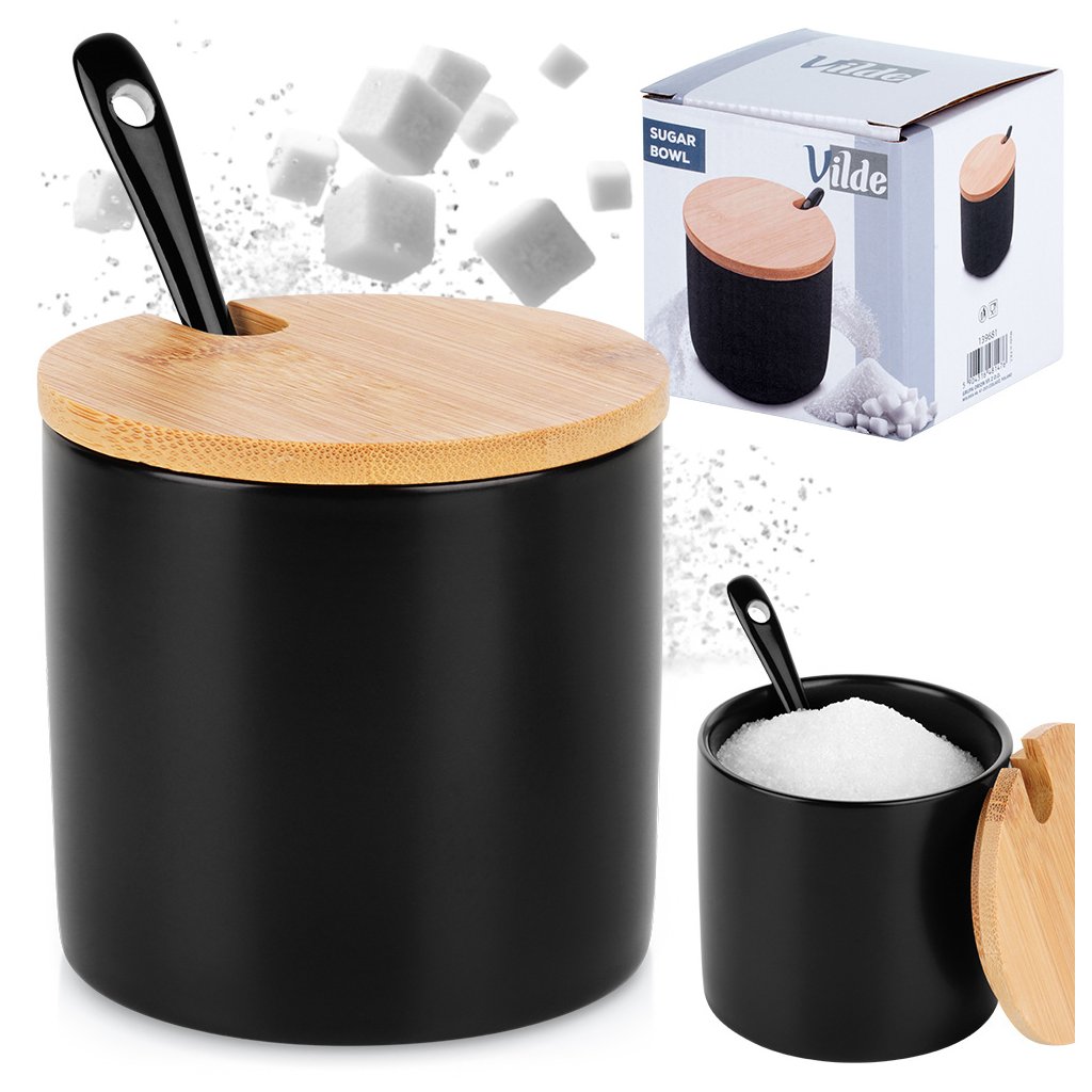Tato výrazná černá keramická cukřenka s odnímatelným víkem a lžičkou je ideálním doplňkem každé kuchyně či jídelny. Díky kombinaci kvalitní keramiky a bambusového víka je nejen praktická, ale také elegantní a stylová.