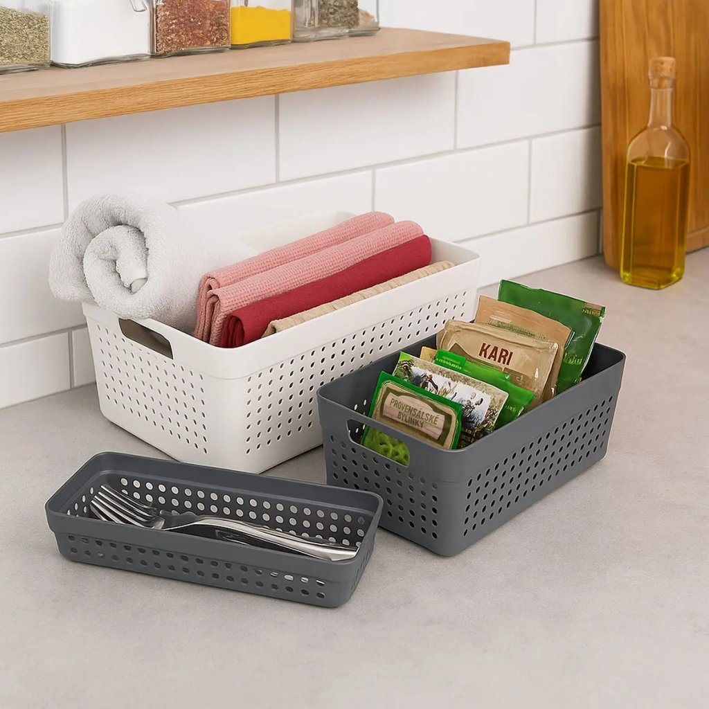 Univerzální košík z odolného plastu PP je ideální pro přehledné uložení různých drobností v domácnosti. Hodí se na tužky, šicí potřeby, kosmetiku, kancelářské potřeby a další malé předměty. Pomůže udržet pořádek v polici, šuplíku i na pracovním stole.