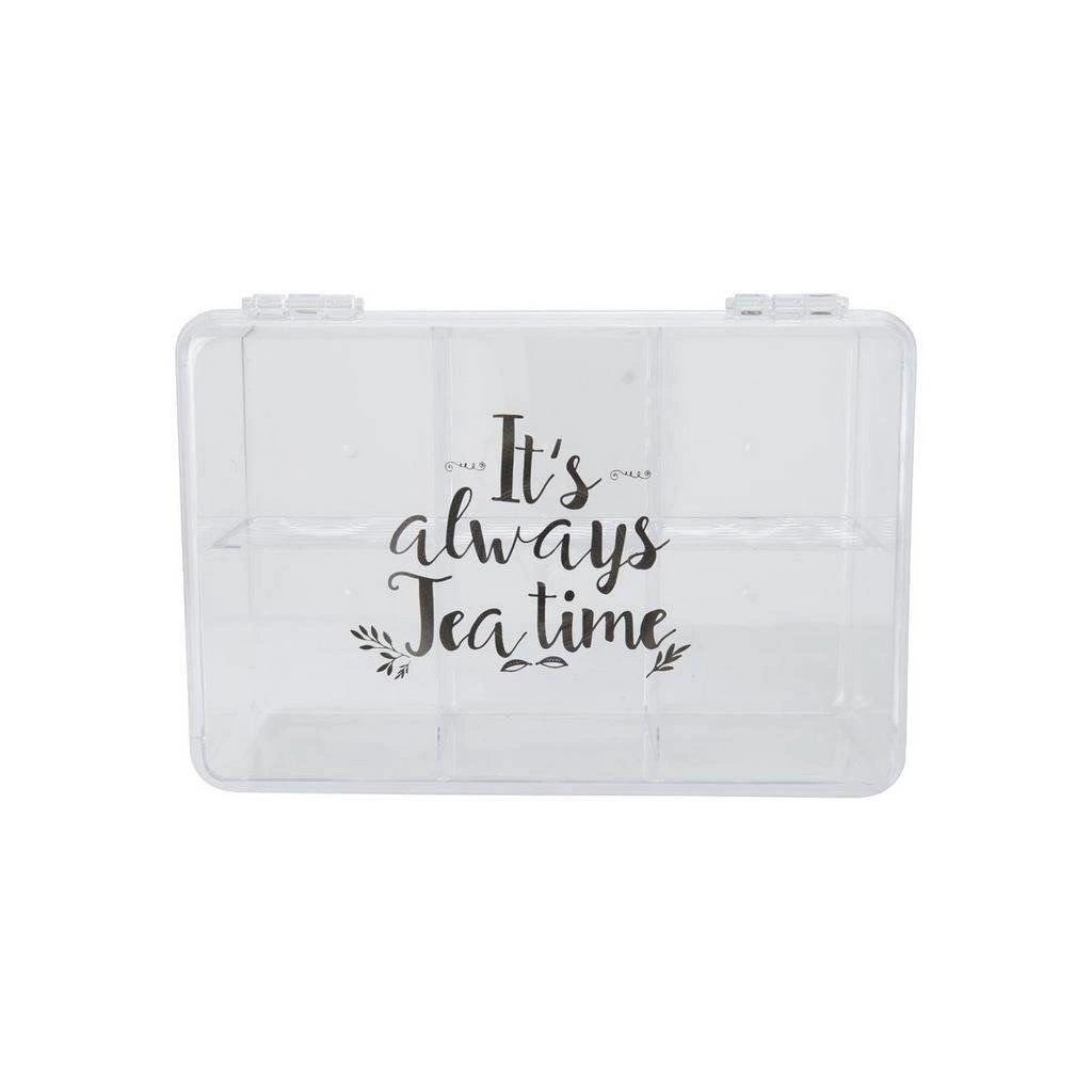 Krabička na čaje, organizér s 6 přihrádkami, transparentní TEA