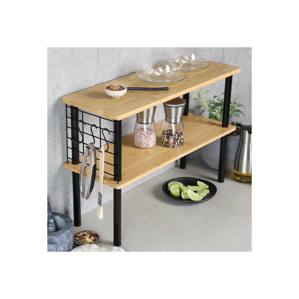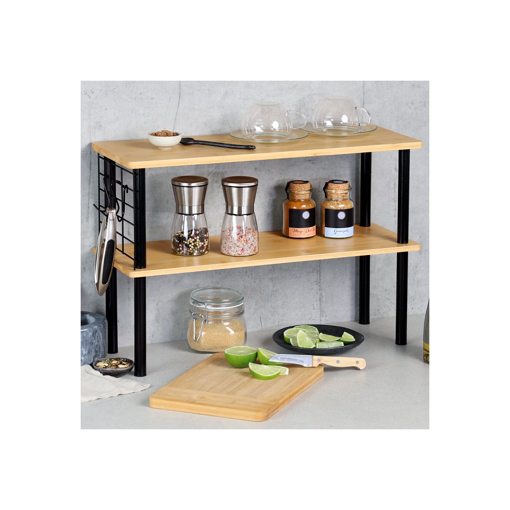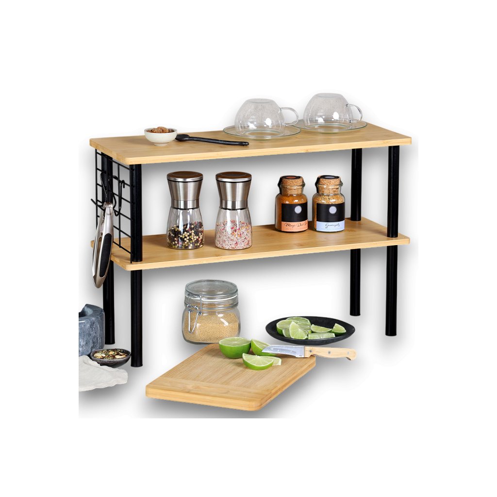 Kuchyňská 2 patrová bambusová polička s háčky KESPER AREA 2