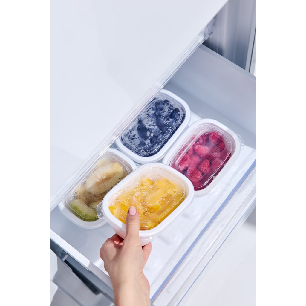Tyto boxy jsou ideální pro zamrazování všech typů potravin – od čerstvé zeleniny a ovoce, přes hotové pokrmy, až po dorty a jiné sladkosti. Můžete je také využít na skladování svačin nebo potravin v lednici. Díky vzduchotěsnému víčku zůstávají potraviny dlouho čerstvé a neztrácejí chuť ani živiny.