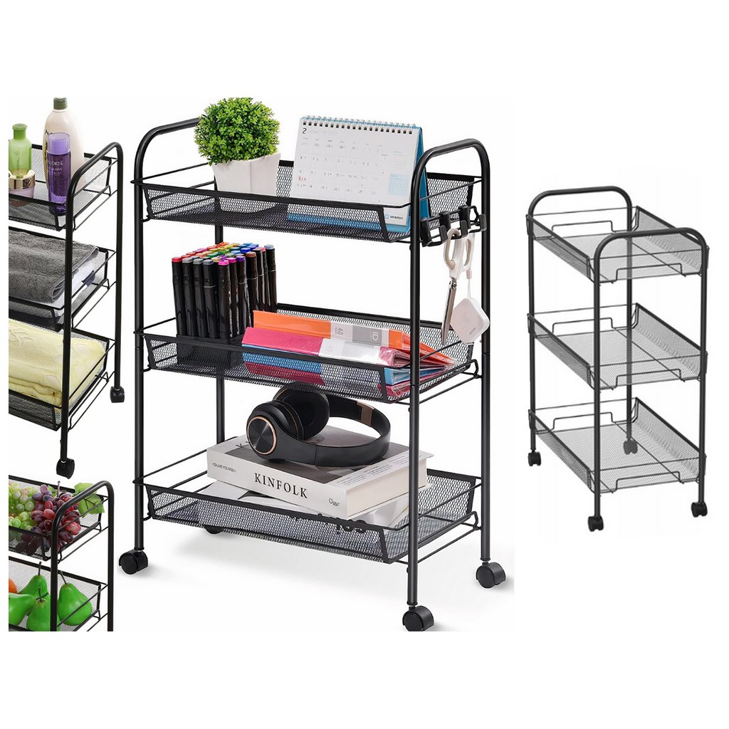 Hledáte praktické a flexibilní úložné řešení do menších nebo stísněných prostor? Tento mobilní kovový regál se třemi policemi vám pomůže mít vše přehledně uspořádané a vždy po ruce.