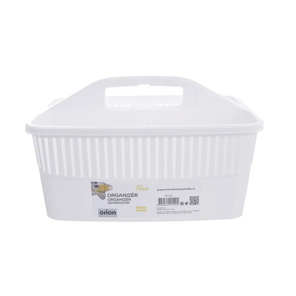 Organizér na čistící potřeby, dělený košík, bílý TINA, 30 x 23 x 17 cm