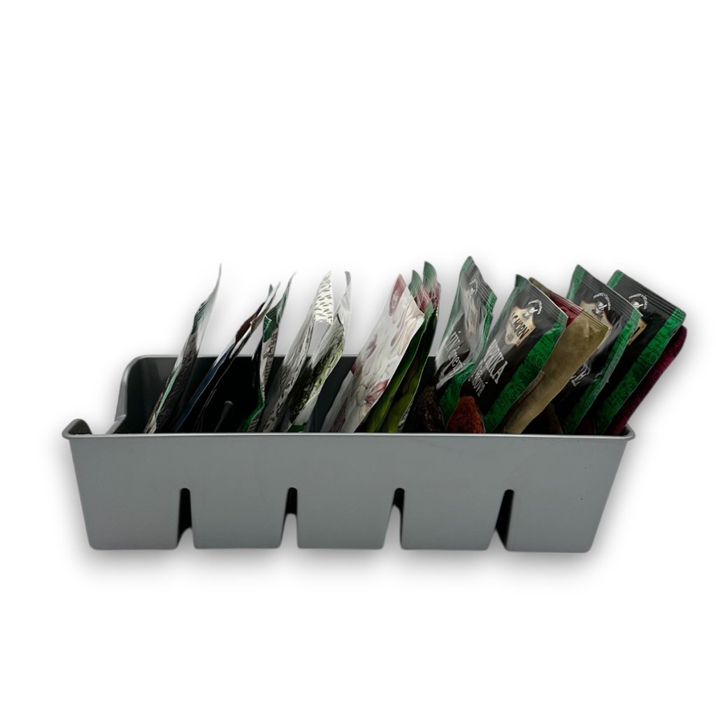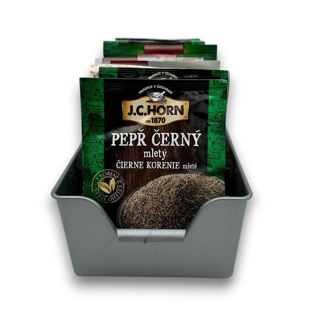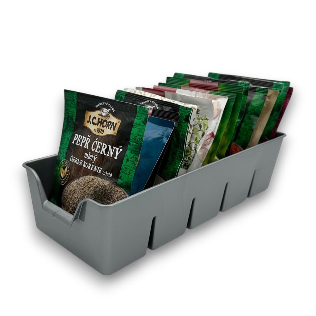 Hledáte praktické a přehledné řešení pro skladování koření v sáčcích, instantních polévek, vanilkového cukru nebo jiných potravinových přísad? Organizér BEN vám pomůže udržet pořádek v kuchyňských skříňkách a zásuvkách bez nutnosti přesypávání koření do jiných nádob.