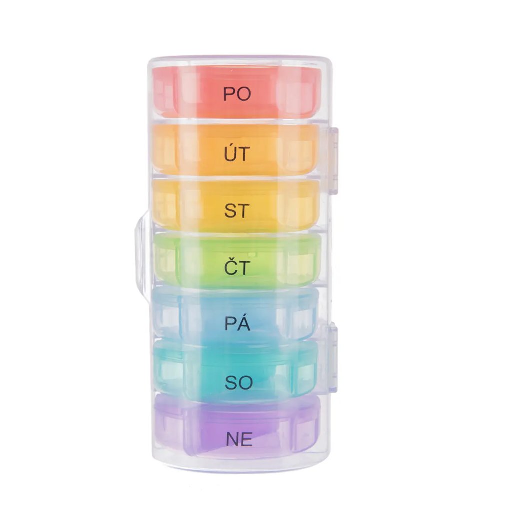 Organizér na léky týdenní 2 sekce + obal a české názvy - DUHA