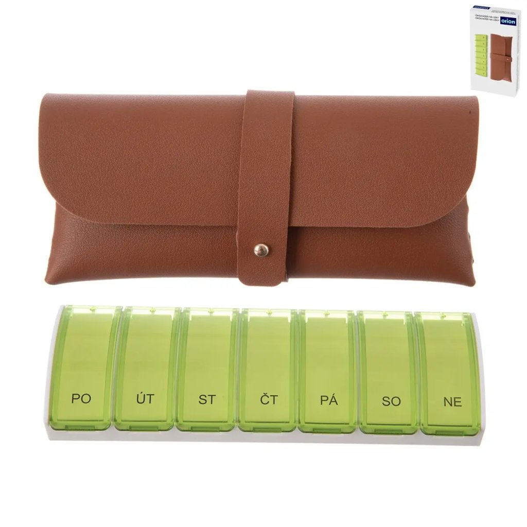 Týdenní organizér na léky s českými popisky, 7 dní + koženkové pouzdro