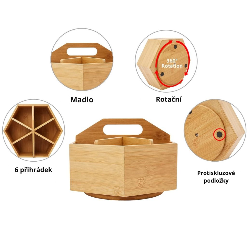 Otočný bambusový organizér s přepážkami, ROTA, pr. 22 x 12,5 cm