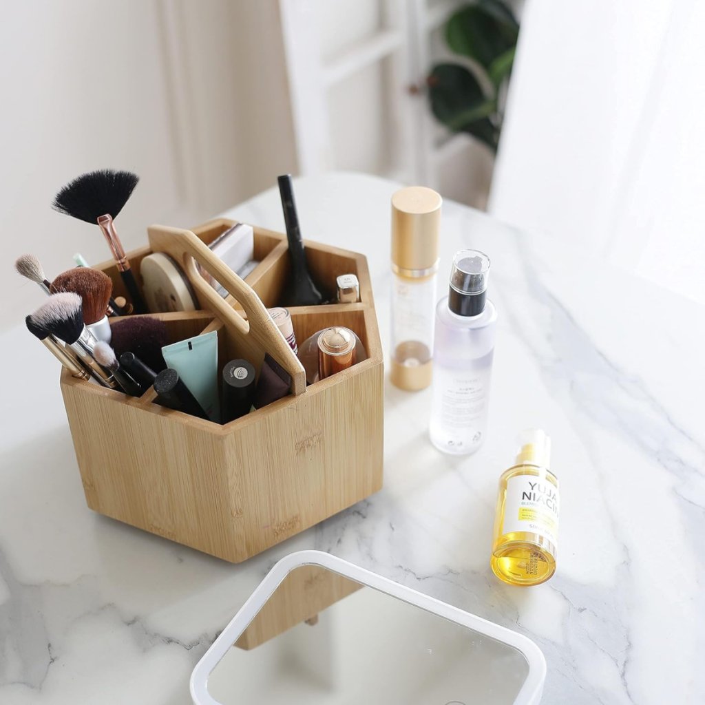 S otočným bambusovým organizérem získáte více prostoru, přehled a snadný přístup ke všem potřebným věcem. Stačí otočit – a máte vše po ruce! 🔄🌿