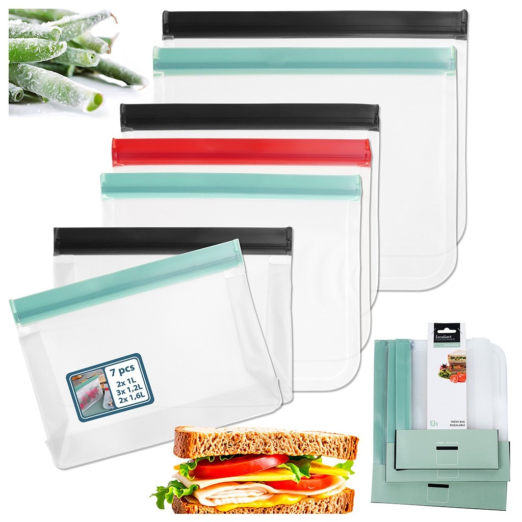 Pevné sáčky, opakovaně použitelné, na zip, sada 7ks