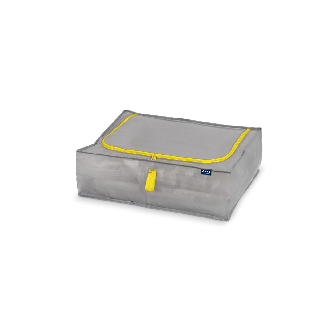 Úložný vak JOTTA o objemu 45 litrů je kompaktním a praktickým řešením pro uložení drobných předmětů i textilií. Díky nízké výšce pouhých 18 cm se snadno vejde do zásuvky, na polici nebo pod postel. Pomůže vám s přehlednou organizací oblečení, doplňků i sezónních věcí. Odolný polypropylen chrání obsah před prachem a vlhkostí a díky zipu a pevným rukojetím je manipulace maximálně pohodlná.