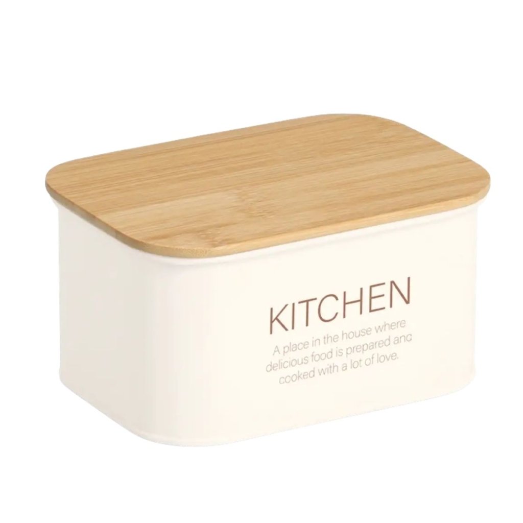 Plechová dóza s bambusovým víkem, bílá KITCHEN ZELLER 1,2l - 17 x 12 x 9 cm