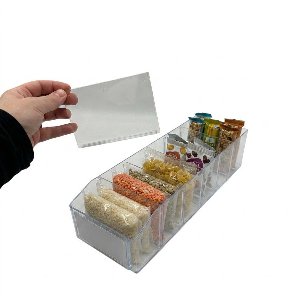 Tento dlouhý a úzký organizér BITO s průhlednými stěnami, štítkem a dvěma přepážkami vám pomůže přetvořit vaši spíž nebo kuchyňskou skříňku v přehledný a dobře uspořádaný prostor.