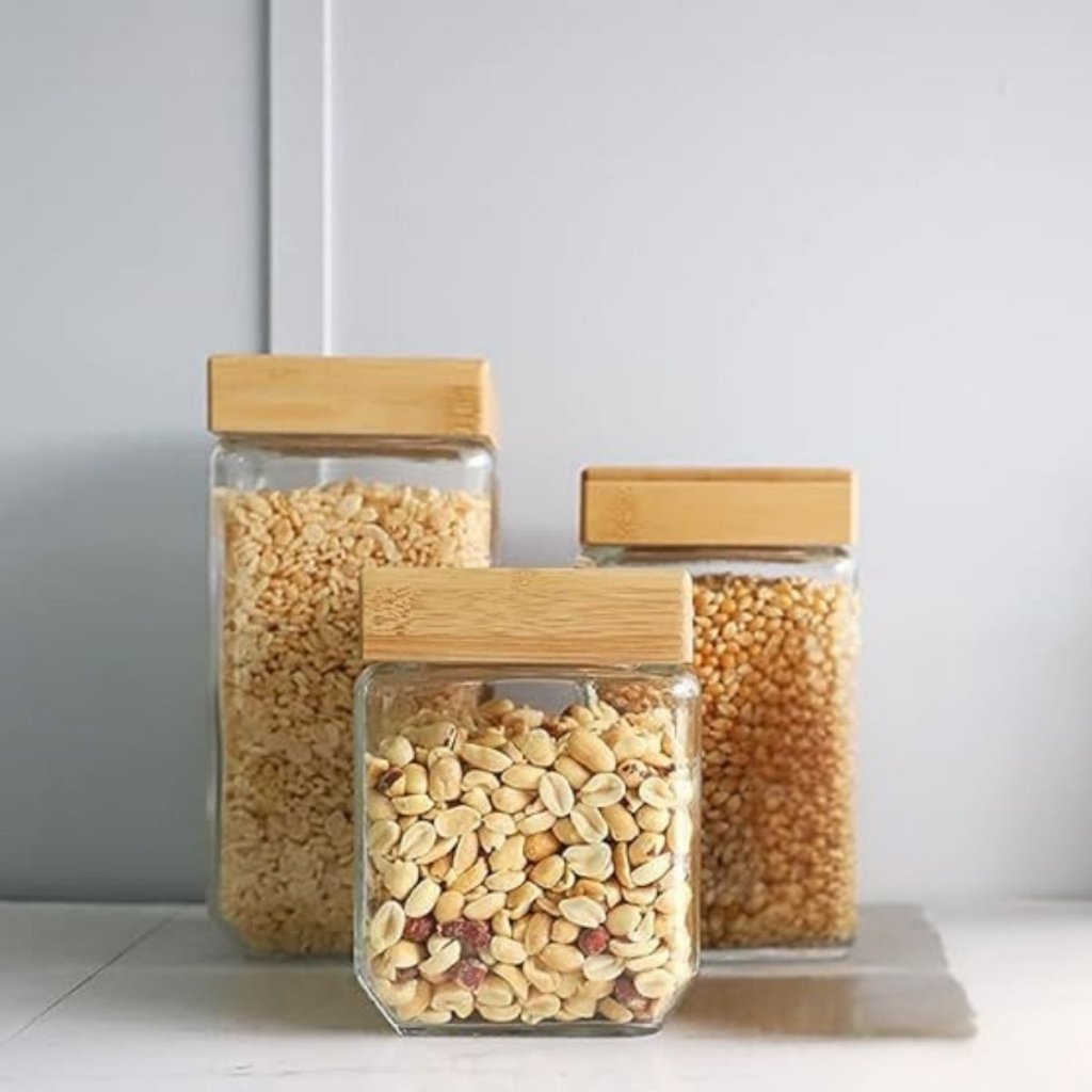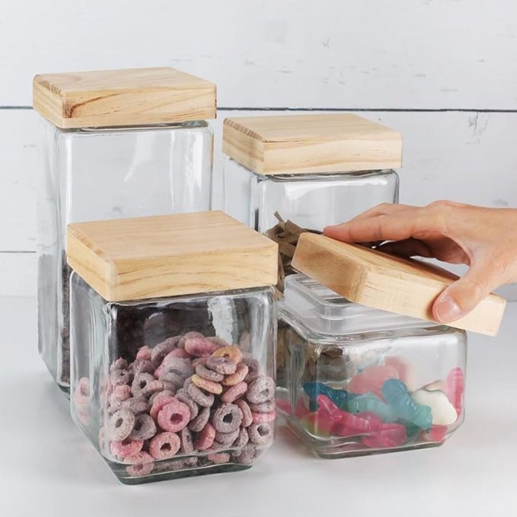 Tato sada 3 skleněných dóz je ideální pro každého, kdo má rád pořádek a styl v kuchyni. Díky čtvercovému tvaru krásně zapadnou do každé skříňky i otevřené police – ať už skladujete mouku, těstoviny nebo cereálie. Jsou vyrobené z odolného skla se silikonovým těsněním, mají dřevěná borovicová víčka a skvěle těsní proti vlhkosti i pachům. Tyto praktické a zároveň rustikální kousky jsou navíc vyrobené z přírodních materiálů – skla a dřeva – takže potěší i milovníky udržitelného bydlení.