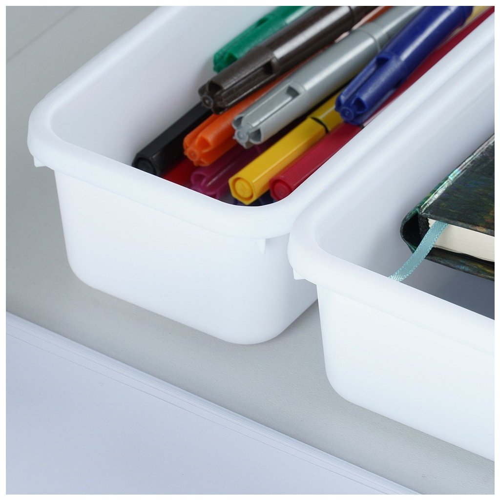 Sada osmi zásuvkových organizérů ve třech různých velikostech nabízí praktické a přehledné řešení pro ukládání kancelářských potřeb, drobného oblečení, kosmetiky i šperků. Díky modulárnímu designu lze jednotlivé organizéry libovolně kombinovat a přizpůsobit každé zásuvce.