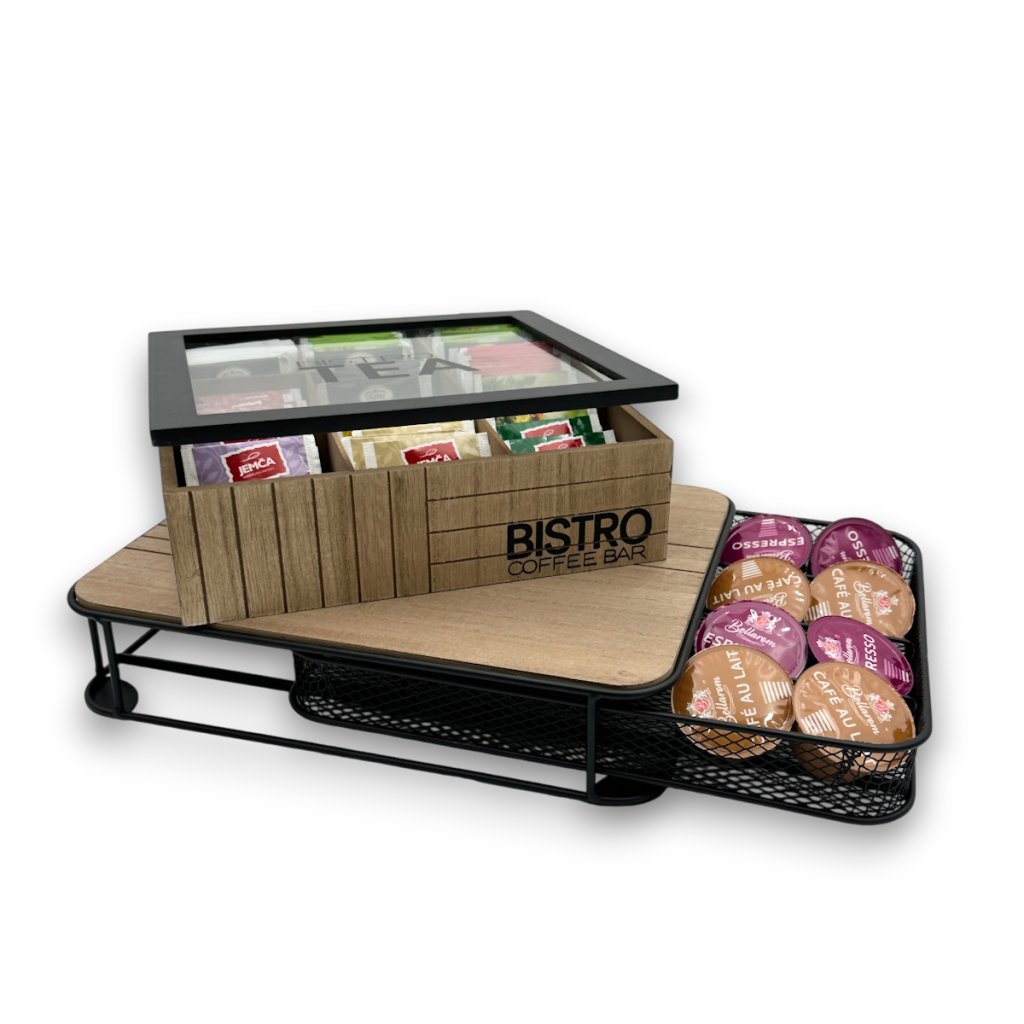 Sada organizéru na čaj + kávové kapsle, dřevo-kov BISTRO