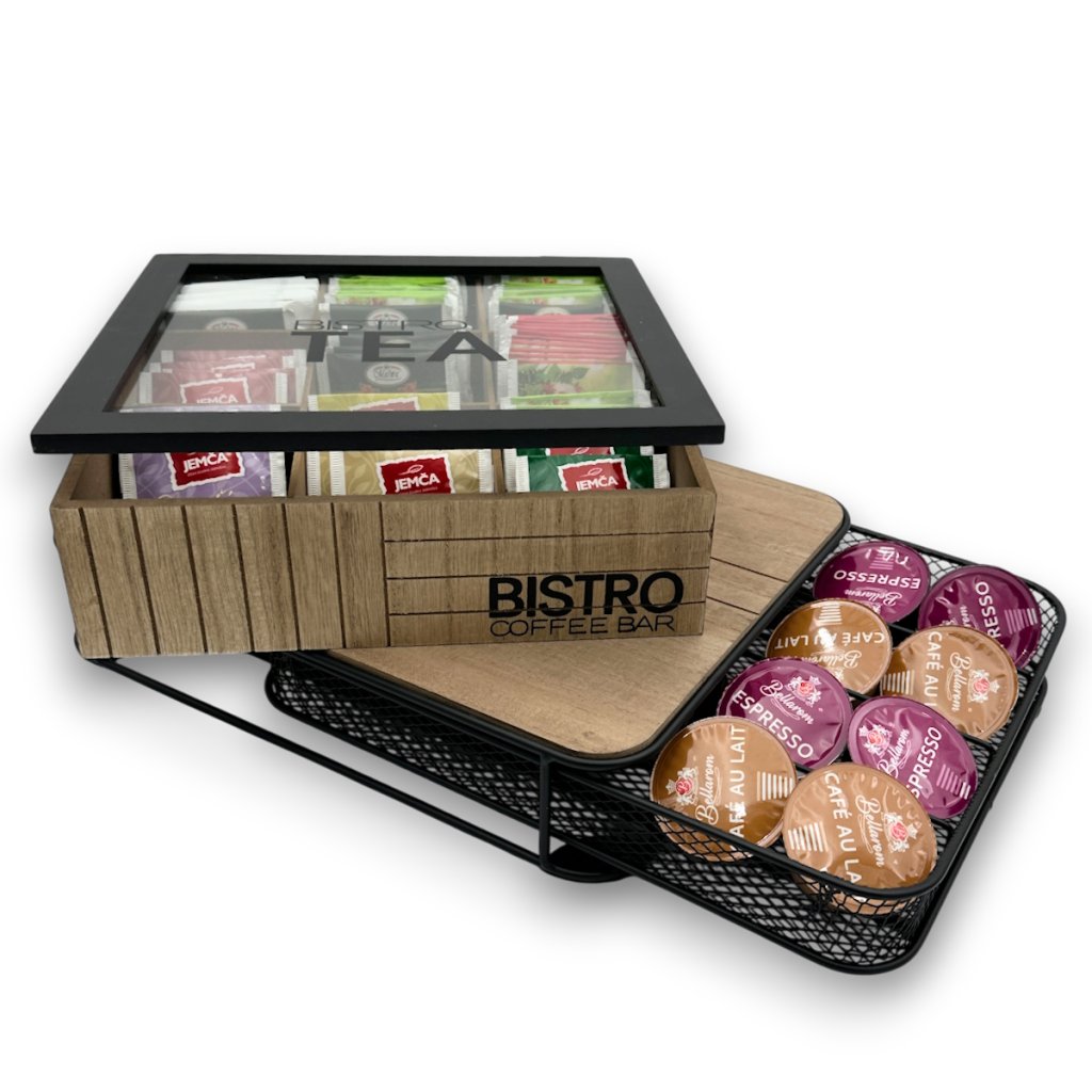 Sada Kovový organizér na kávové kapsle a krabička na čaj BISTRO
