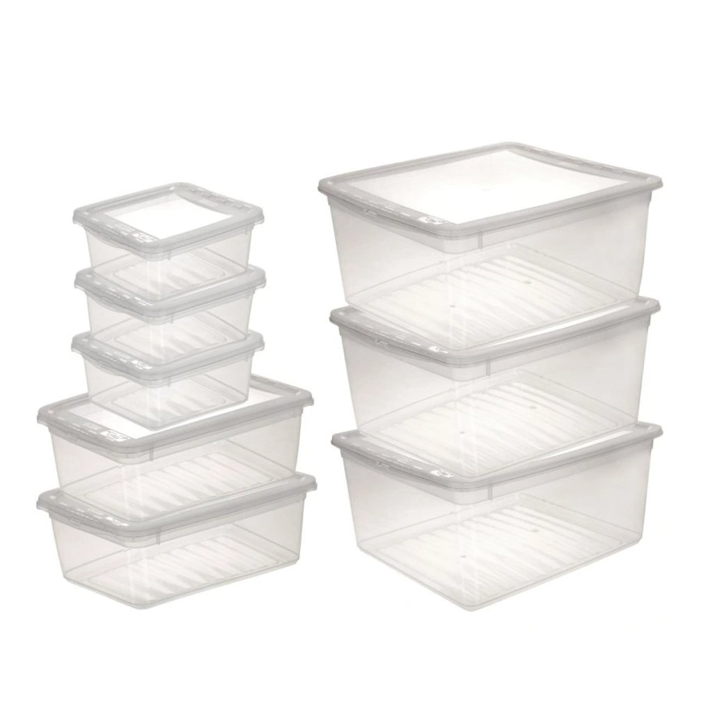 Sada úložných boxů s víkem BEA Clearbox (3 x 1,7L, 2 x 5,5L, 3 x 18L), 39 x 33,5 x 25 cm
