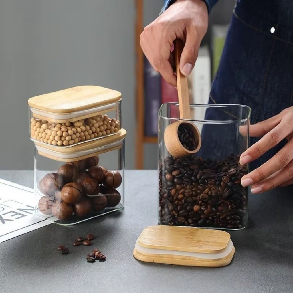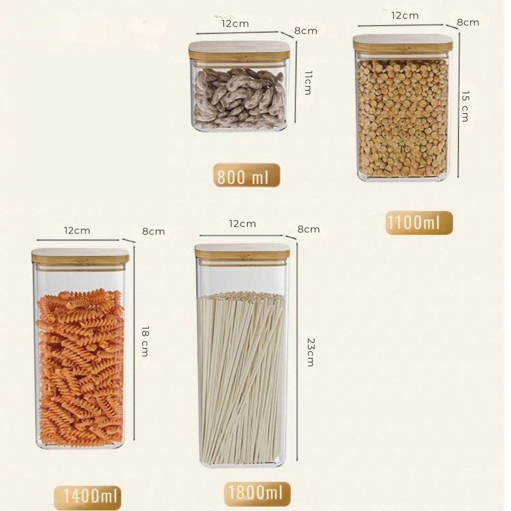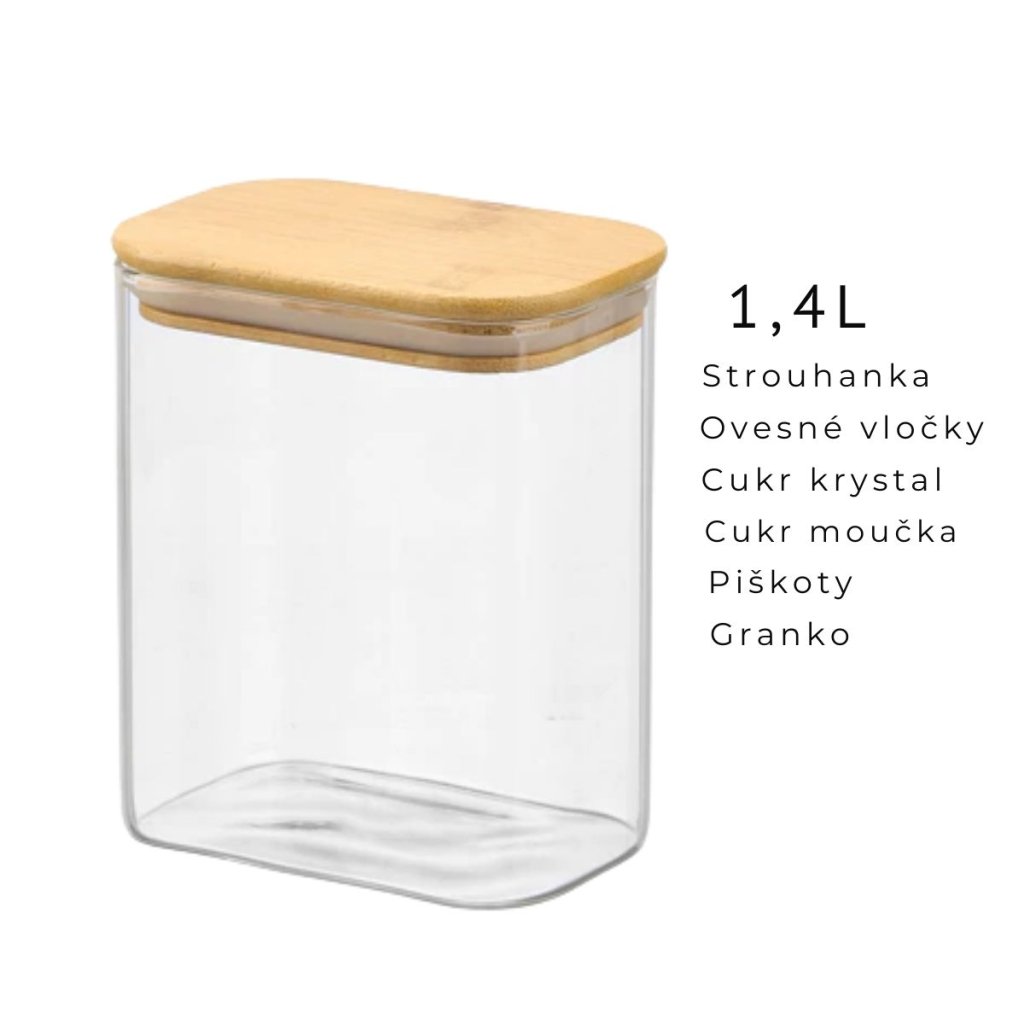 Skleněná dóza obdelníková s bambusovým víkem, 1,4l VIVO