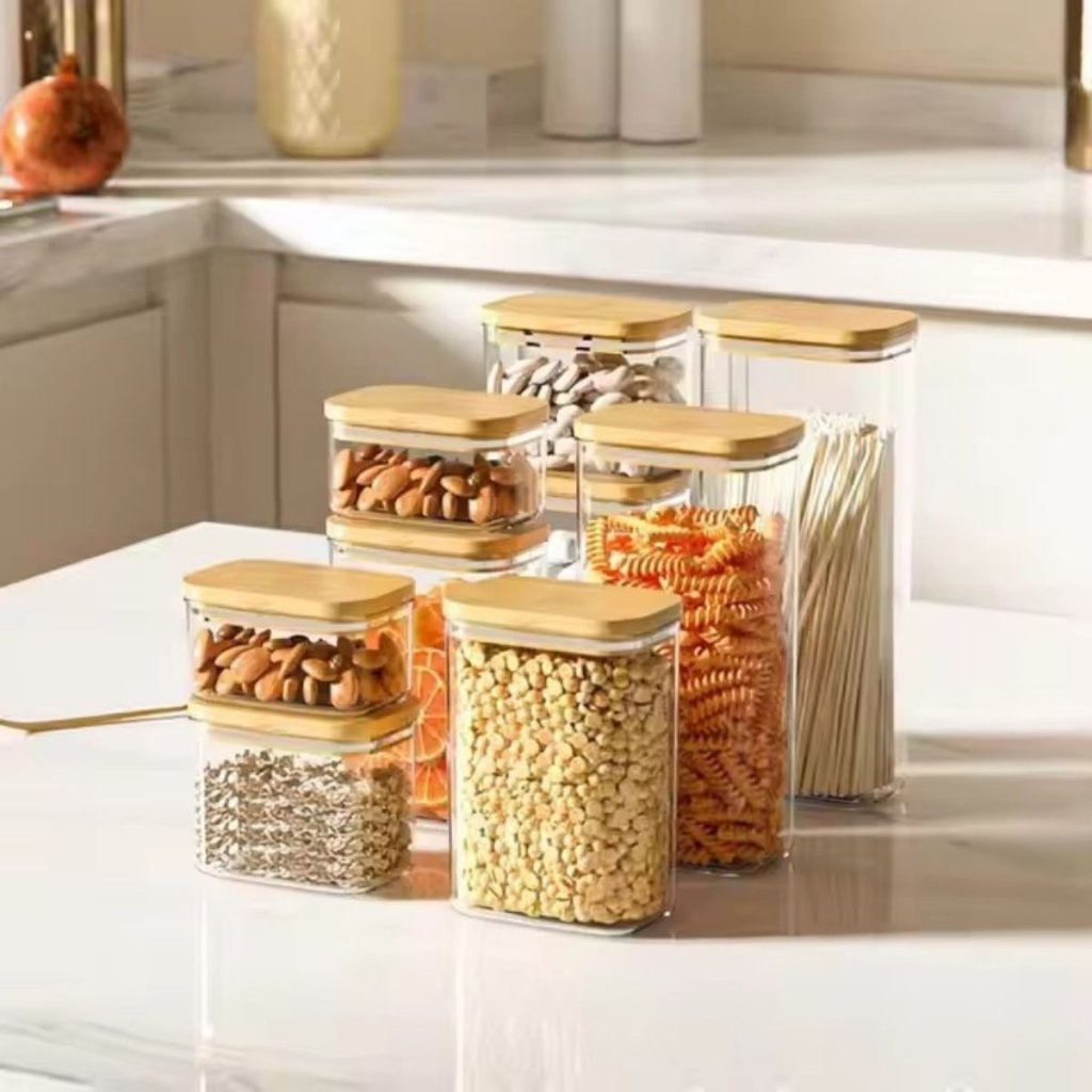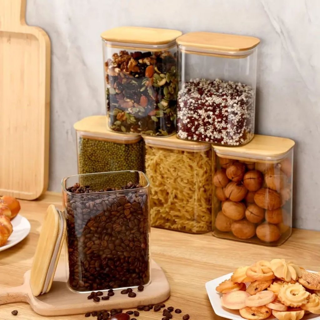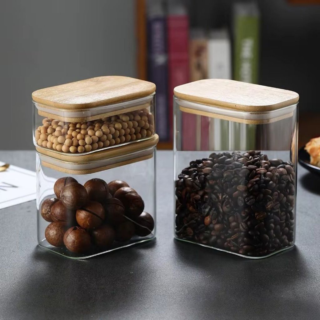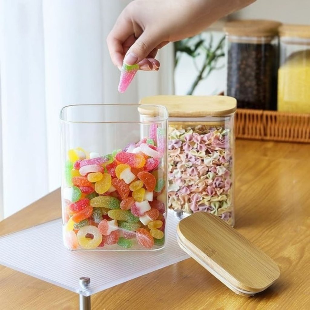 Skleněná dóza obdelníková s bambusovým víkem, 1,4l VIVO
