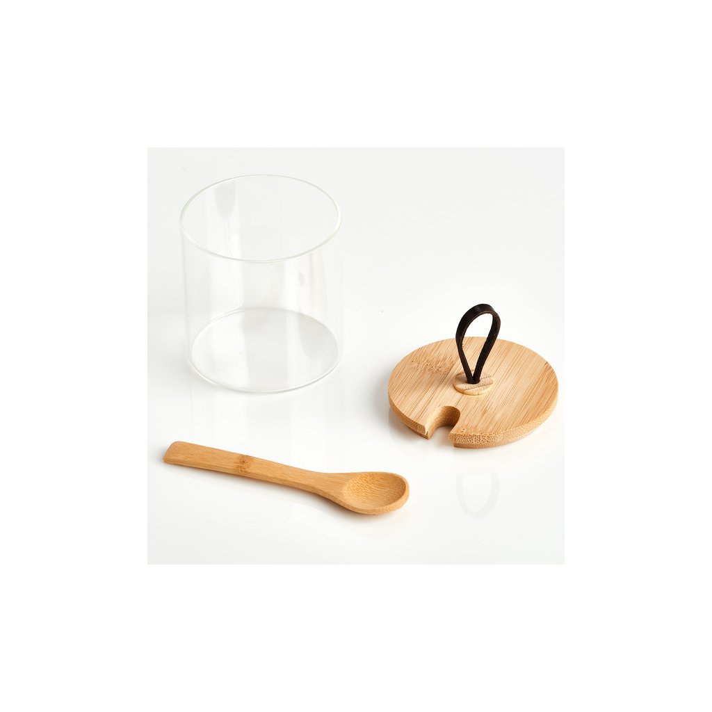 🥄 SKLENĚNÁ DÓZIČKA S BAMBUSOVÝM VÍKEM A LŽIČKOU – STYLOVÉ SERVÍROVÁNÍ KOŘENÍ NEBO CUKRU