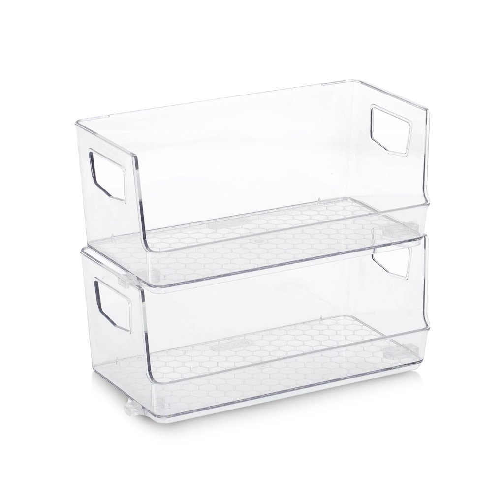 Získejte dokonalou organizaci ve vaší kuchyni! Tyto praktické stohovatelné organizéry pomohou udržet přehled ve spíži, lednici i kuchyňských skříňkách. Transparentní provedení umožňuje snadno vidět obsah, zatímco otevřená přední strana zajistí rychlý přístup k potravinám.