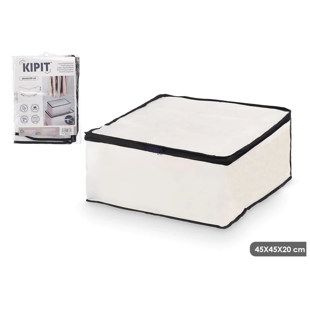 Textilní úložný box na uschování oblečení a ložního prádla, WHITE KIPIT, 45x45x20, bílý