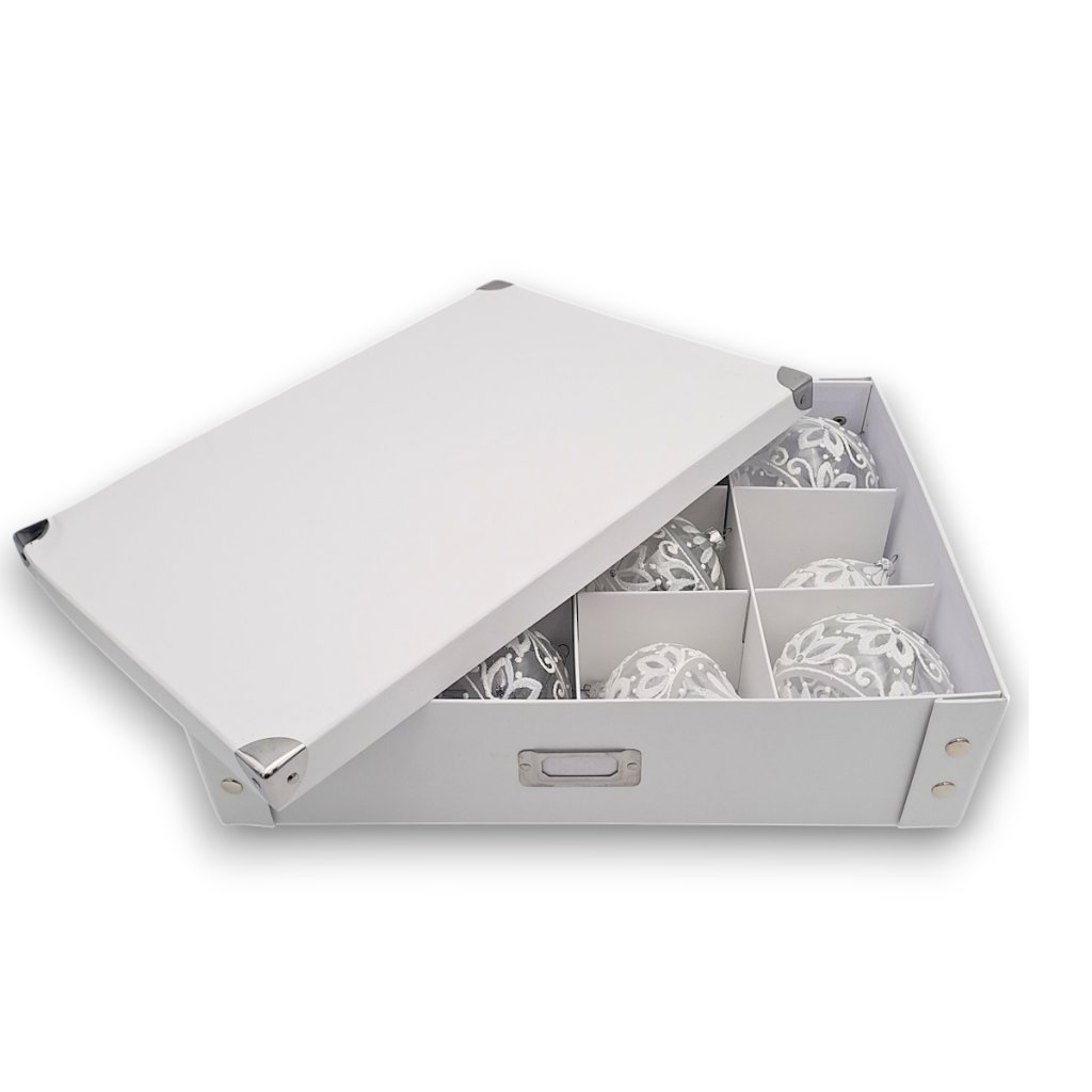 Třídící organizér s přepážkami na vánoční koule a ozdoby – bílý