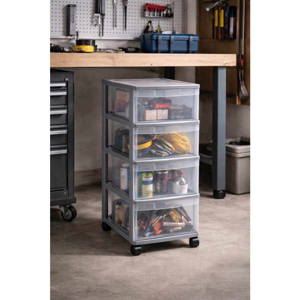 Máte doma nebo v kanceláři věci, které si zaslouží své stálé místo? Tento praktický úložný box OFFICEMIX MAXI se 4 zásuvkami vám pomůže udržet pořádek a přehled – ať už jde o hračky, kancelářské potřeby, dokumenty nebo třeba sadu kostek LEGO DUPLO. Skvěle vypadá, snadno se přenáší a navíc je díky kolečkům neuvěřitelně flexibilní. Moderní antracitové provedení s průhlednými šuplíky zapadne do každé místnosti – od dětského pokoje až po dílnu.