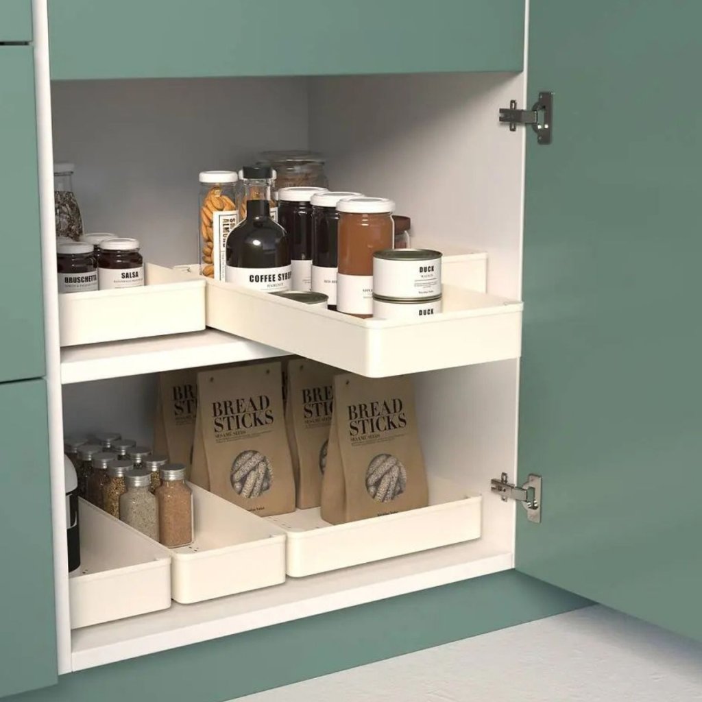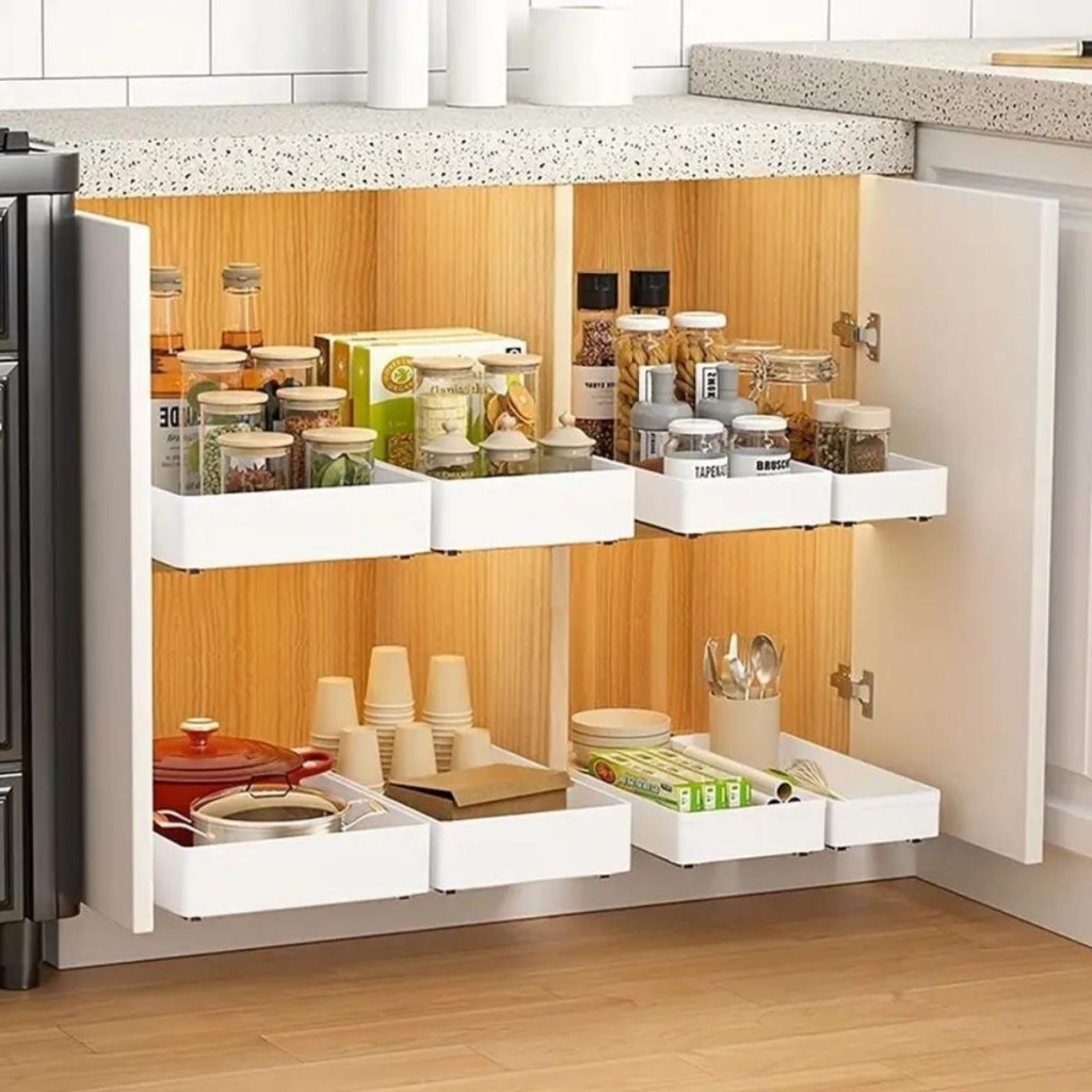 Věčně bojujete s přístupem k věcem vzadu ve skříni? Díky tomuto chytrému výsuvnému organizéru už nemusíte přehrabovat celý obsah linky. Umožní vám snadný přístup ke všem uloženým věcem – stačí jen vysunout a máte jasno. Využijte naplno prostor i v hlubokých skříňkách, ať už v kuchyni, koupelně, kanceláři nebo šatně. Elegantní a čistý design z odolného ABS plastu navíc skvěle zapadne do každého interiéru.