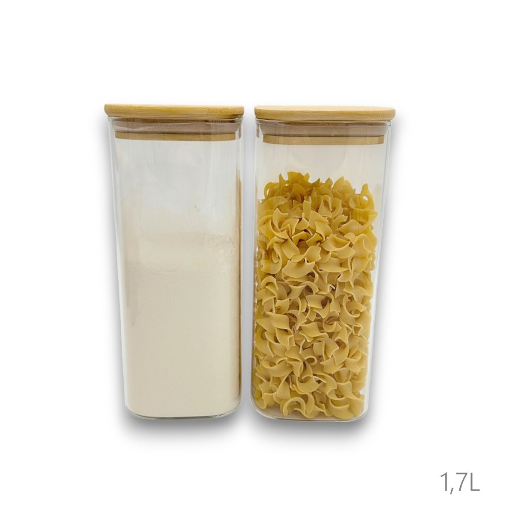 Udržujte své potraviny čerstvé a organizované díky této sadě elegantních a praktických skleněných dóz. Spojení borosilikátového skla, bambusového víka a silikonového těsnění zajišťuje nejen hygienické skladování, ale i moderní doplněk do každé kuchyně.