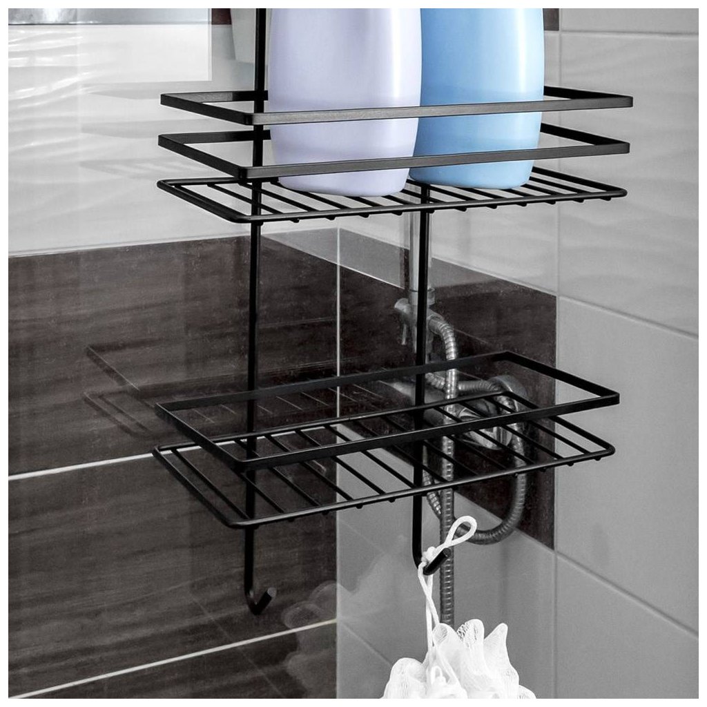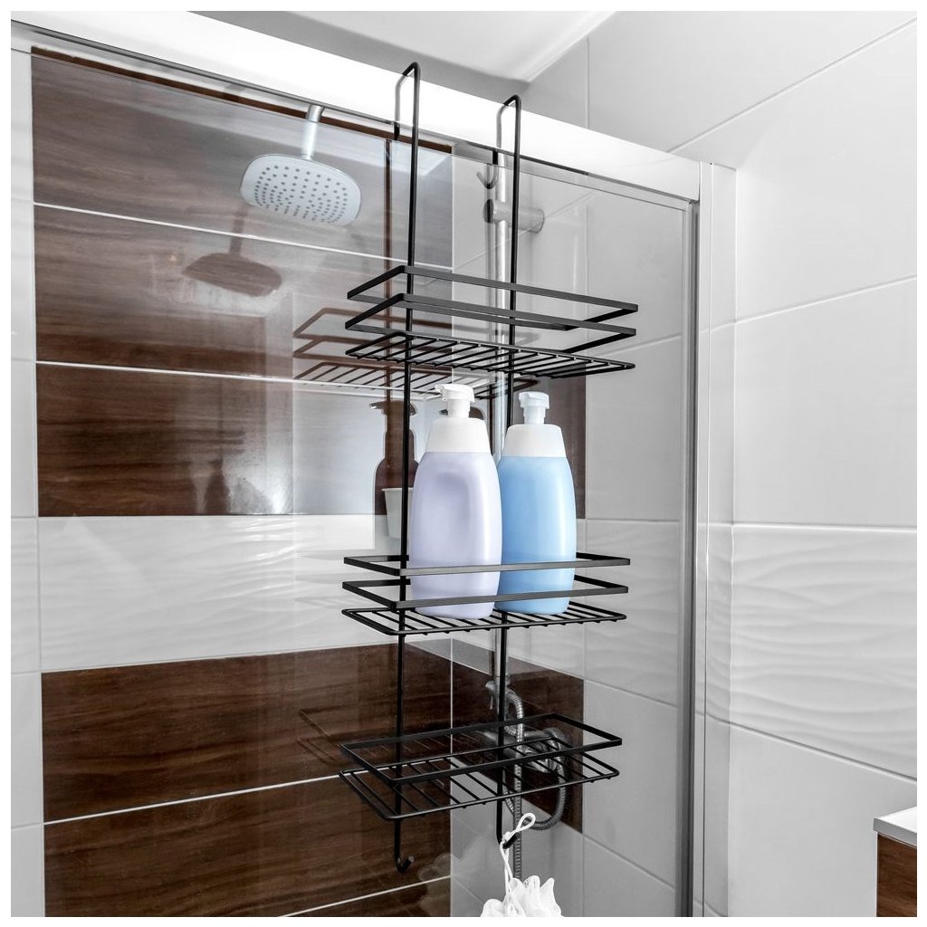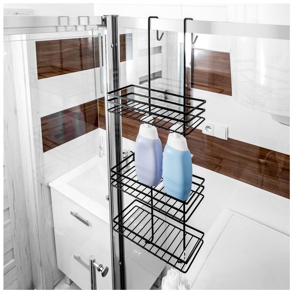 Tato závěsná tříúrovňová sprchová polička z odolného kovu je ideálním řešením pro organizaci kosmetiky a koupelnových doplňků přímo ve sprchovém koutě. Díky zavěšení na sprchovou zástěnu ji nainstalujete během okamžiku, bez vrtání a bez poškození obkladů. Moderní černý design v loftovém stylu navíc skvěle doplní každou koupelnu.