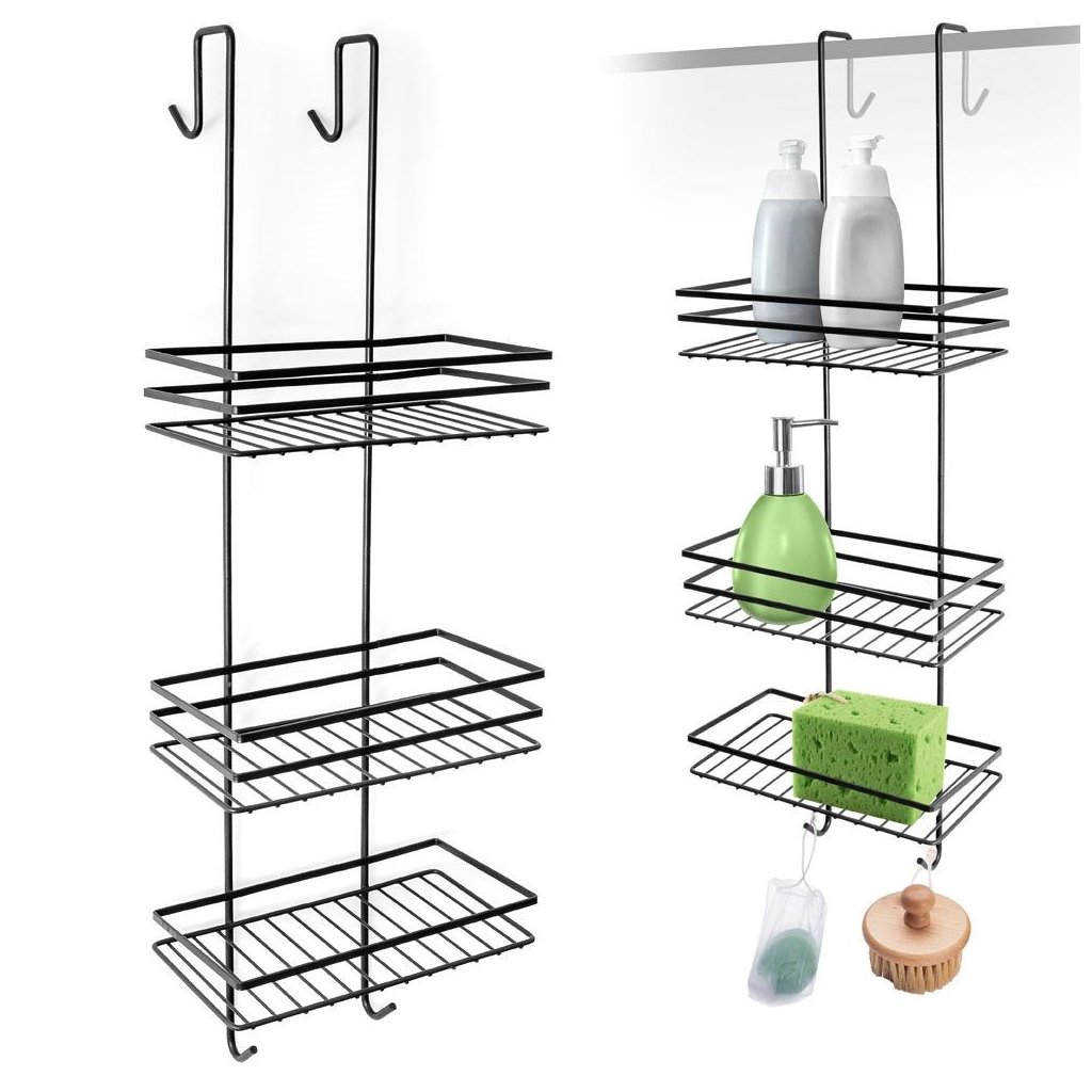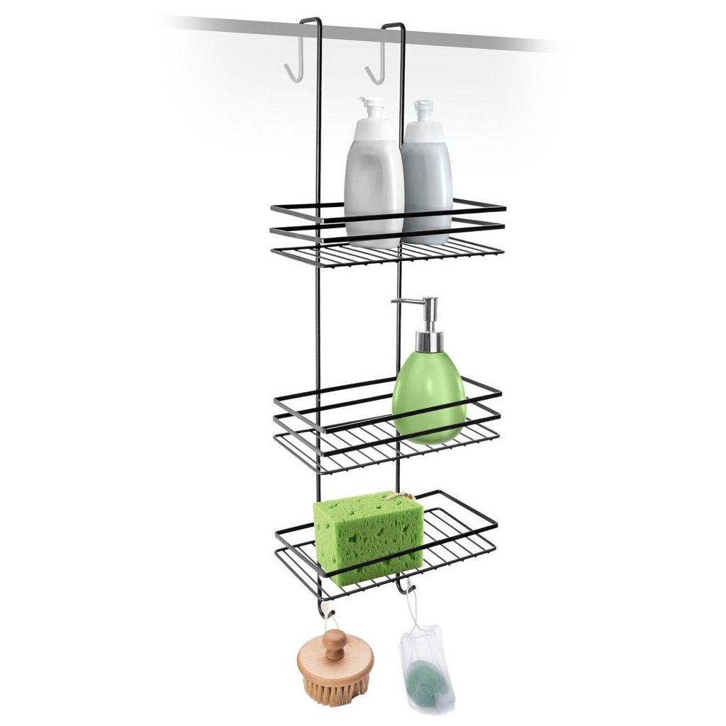 Závěsná patrová polička do sprchy, černá, 25 x 20 x 78,5 cm